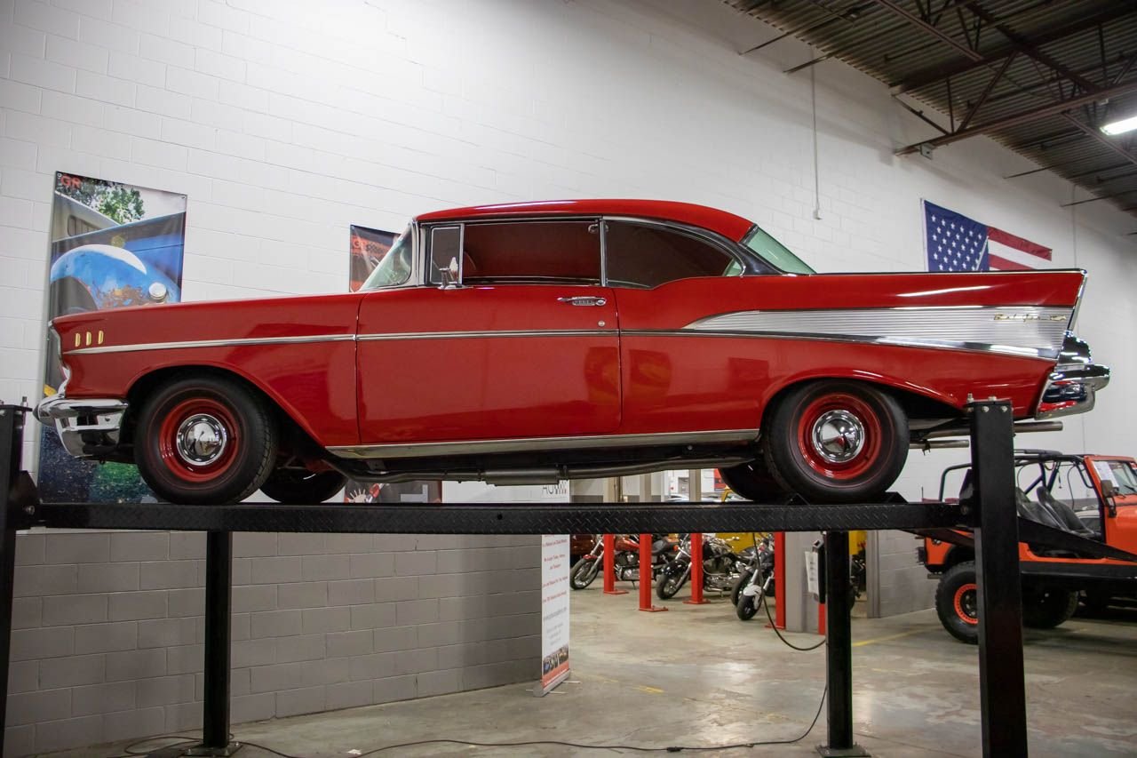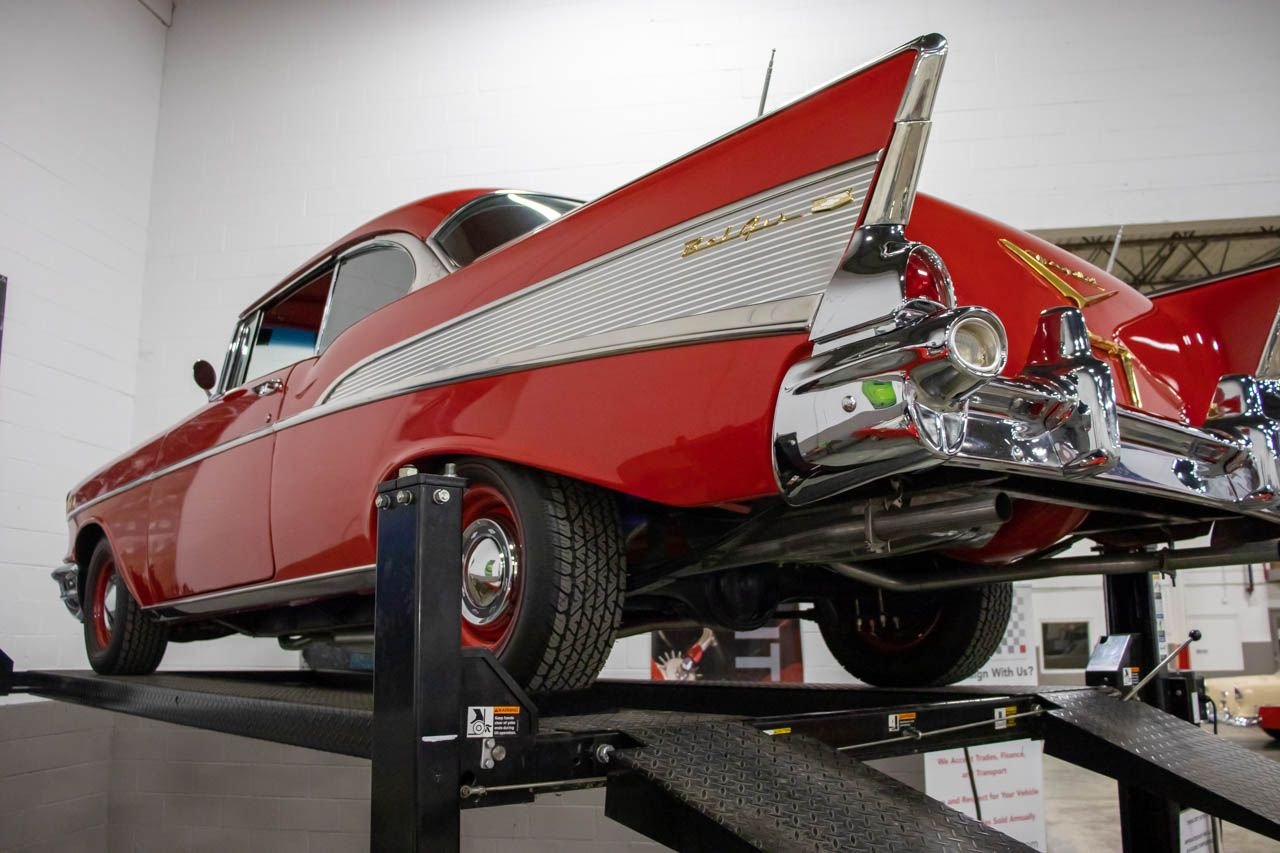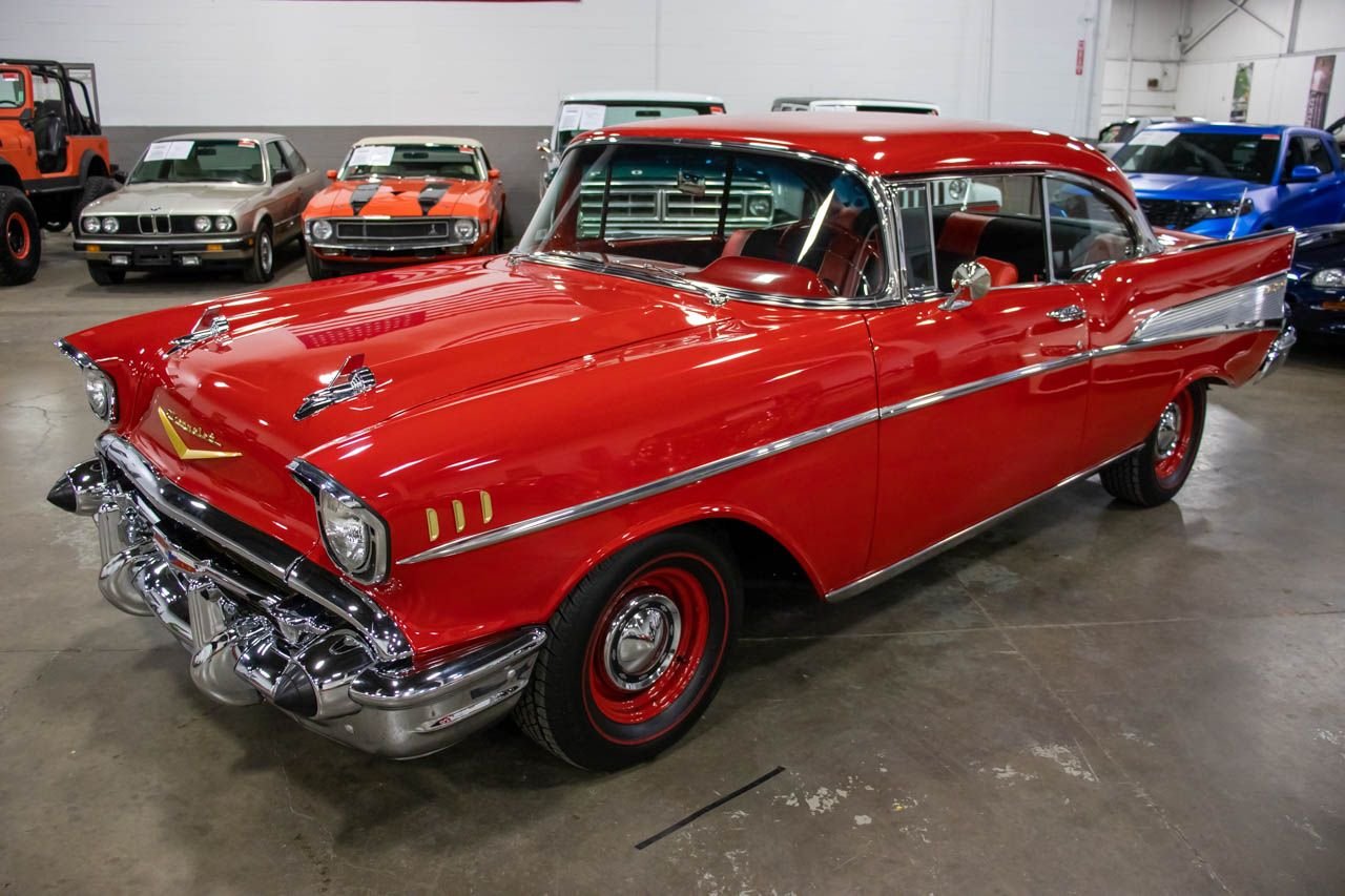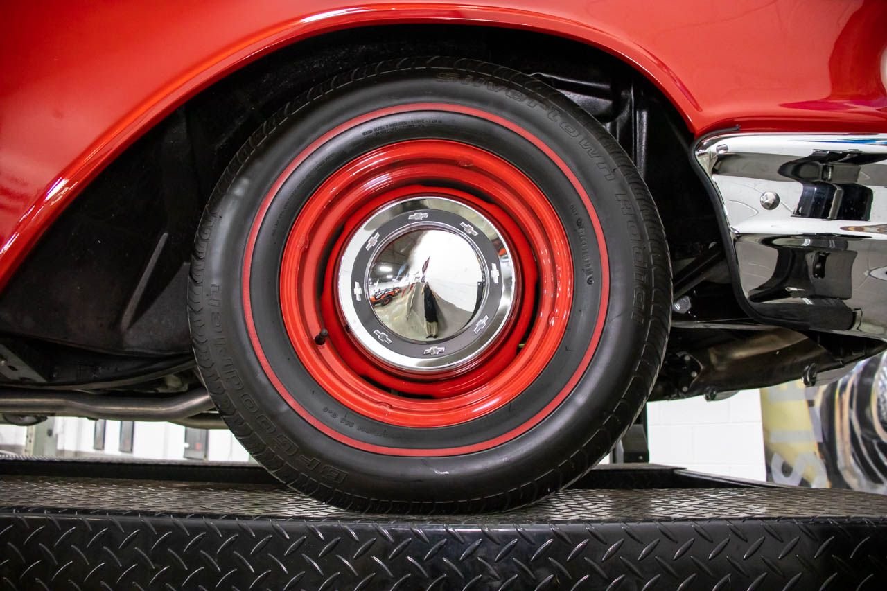 1957 Chevrolet Bel Air for your consideration. This Bel Air comes in a beautiful Red exterior paint over a clean Red and Black interior. Powering this Chevrolet is a 327ci V8 paired with a Tremec 5-speed manual transmission and a 3.55 rear end. This vehicle comes with some nice features such as; new motor, new transmission, new redline tires, new power disc brakes, new steering box, new wiring, heat, and A/C. This car had a full frame-off restoration performed on it. Drive this one out of our showroom or have us assist with shipping it to you anywhere in the United States! Don’t hesitate to give us a call with any questions or for more information.
