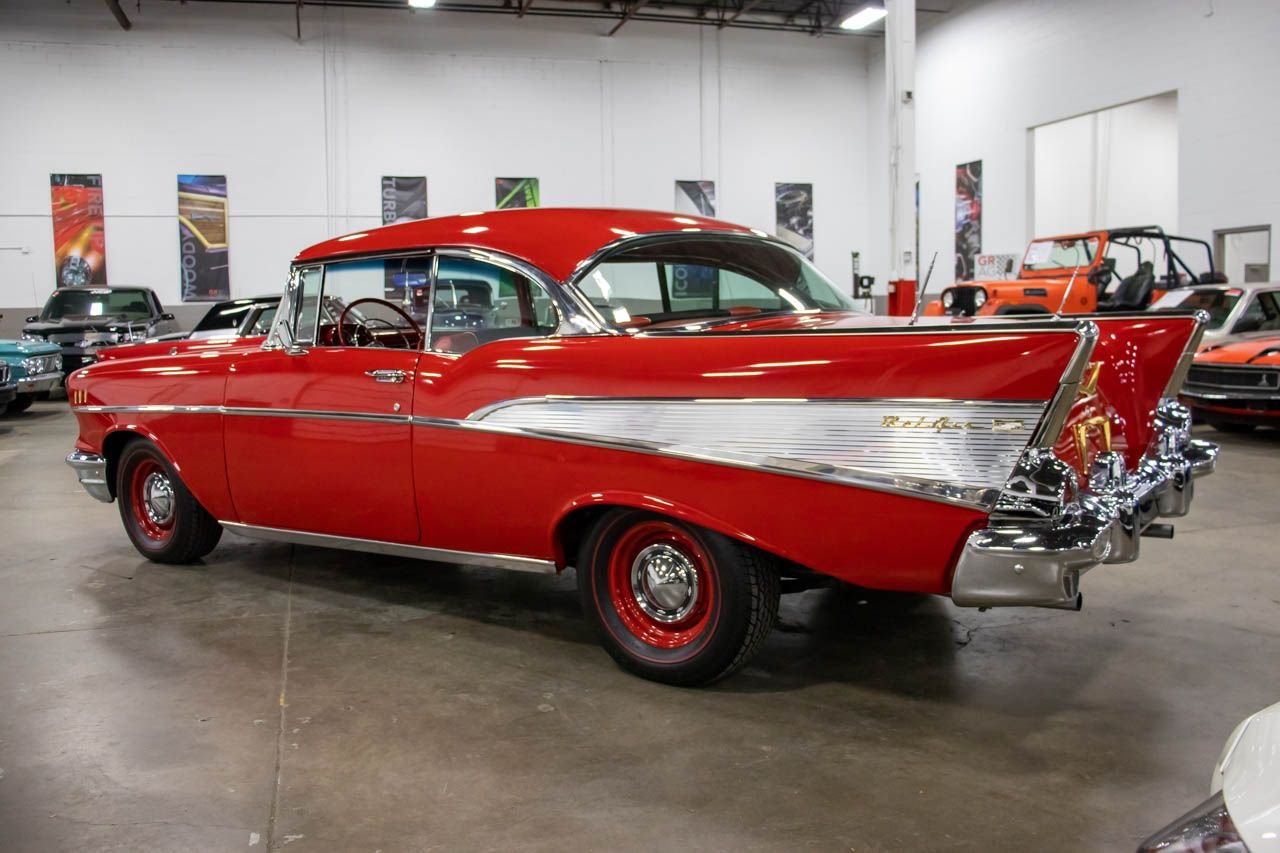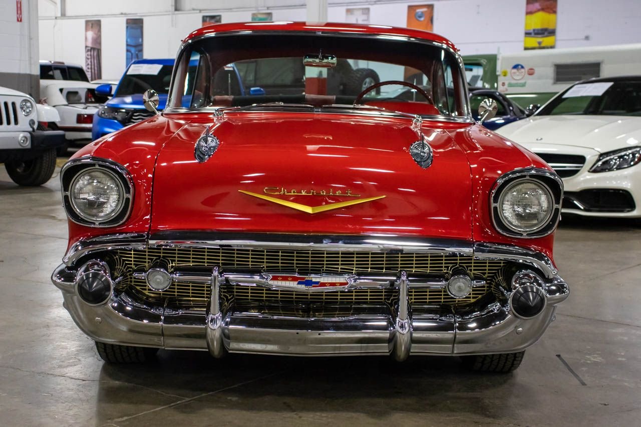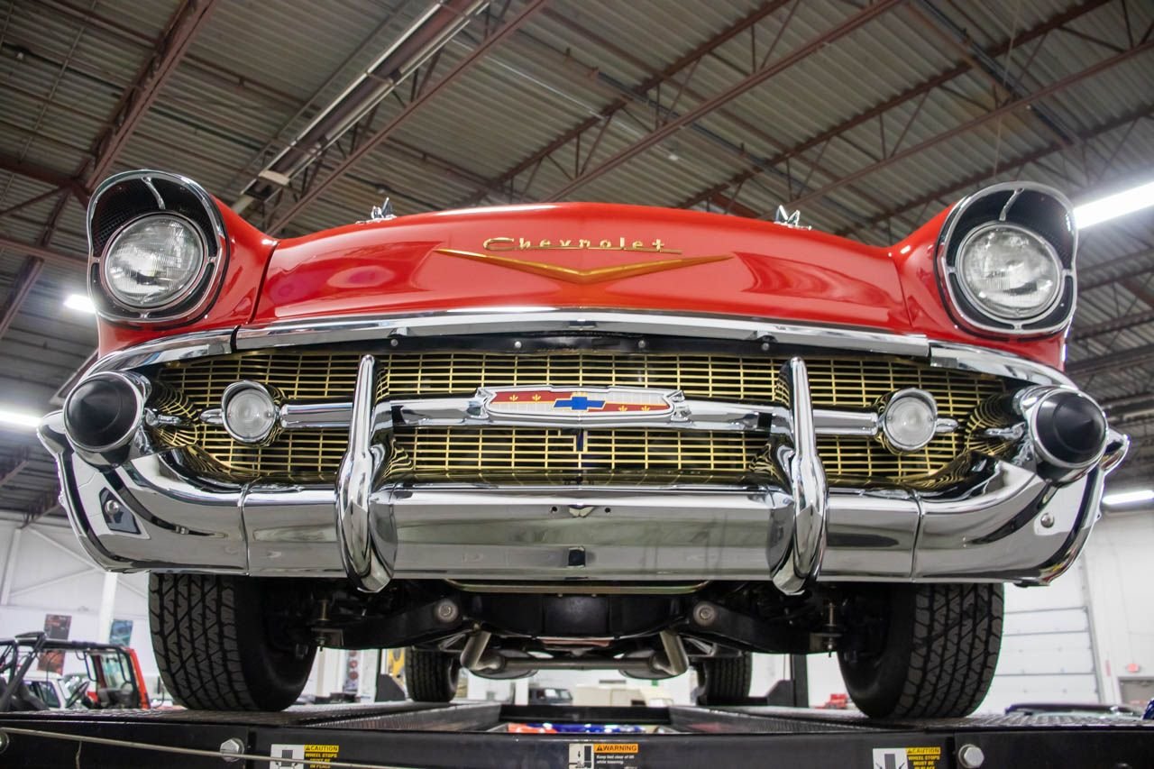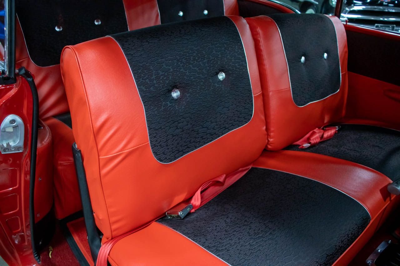 1957 Chevrolet Bel Air for your consideration. This Bel Air comes in a beautiful Red exterior paint over a clean Red and Black interior. Powering this Chevrolet is a 327ci V8 paired with a Tremec 5-speed manual transmission and a 3.55 rear end. This vehicle comes with some nice features such as; new motor, new transmission, new redline tires, new power disc brakes, new steering box, new wiring, heat, and A/C. This car had a full frame-off restoration performed on it. Drive this one out of our showroom or have us assist with shipping it to you anywhere in the United States! Don’t hesitate to give us a call with any questions or for more information.