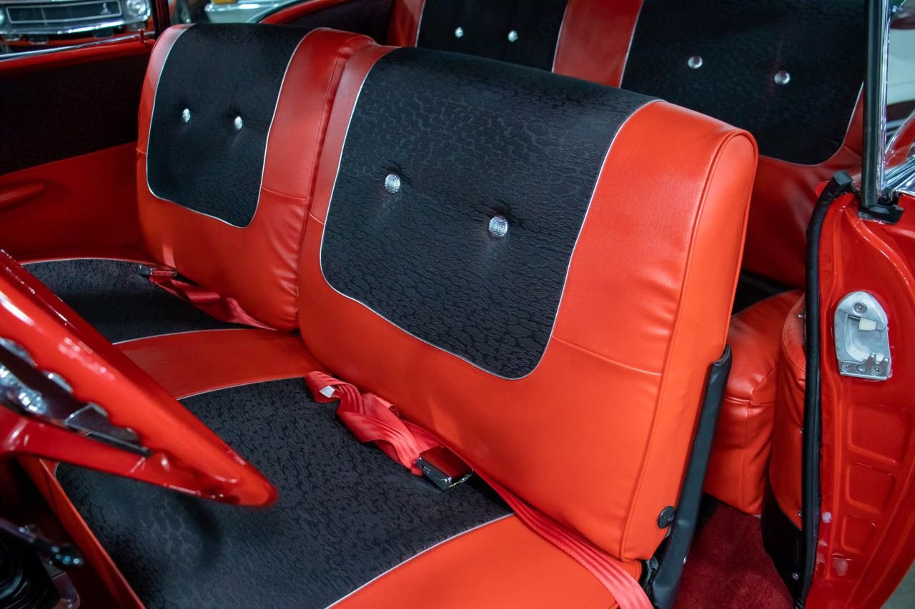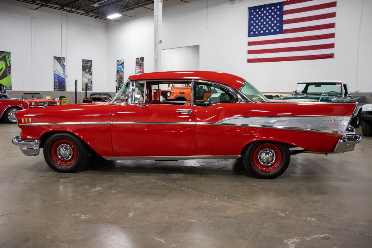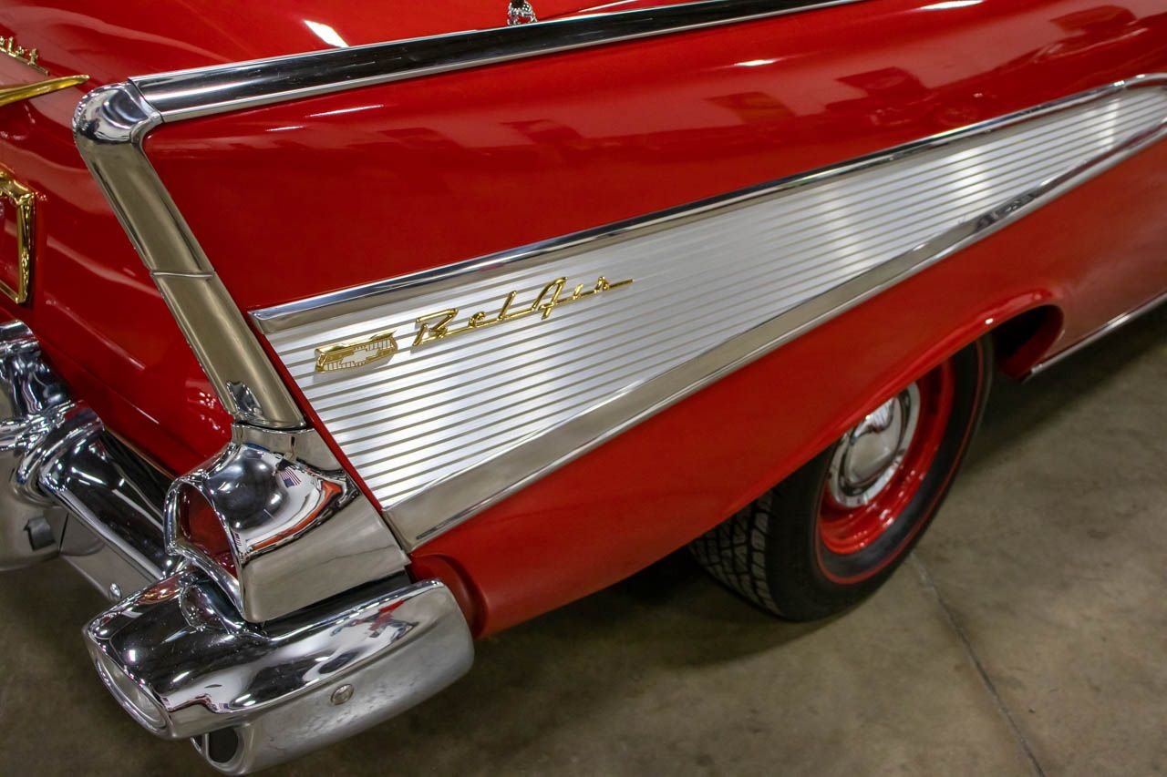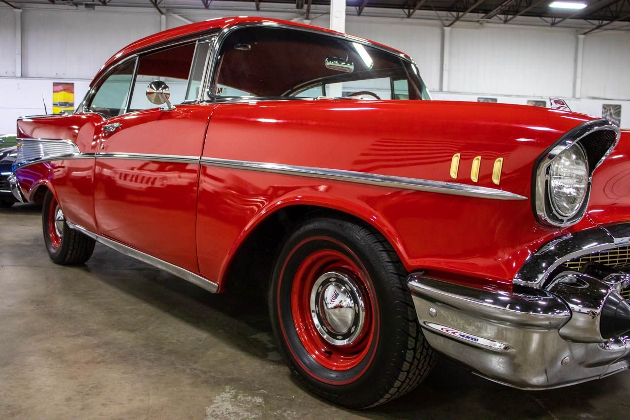 1957 Chevrolet Bel Air for your consideration. This Bel Air comes in a beautiful Red exterior paint over a clean Red and Black interior. Powering this Chevrolet is a 327ci V8 paired with a Tremec 5-speed manual transmission and a 3.55 rear end. This vehicle comes with some nice features such as; new motor, new transmission, new redline tires, new power disc brakes, new steering box, new wiring, heat, and A/C. This car had a full frame-off restoration performed on it. Drive this one out of our showroom or have us assist with shipping it to you anywhere in the United States! Don’t hesitate to give us a call with any questions or for more information.