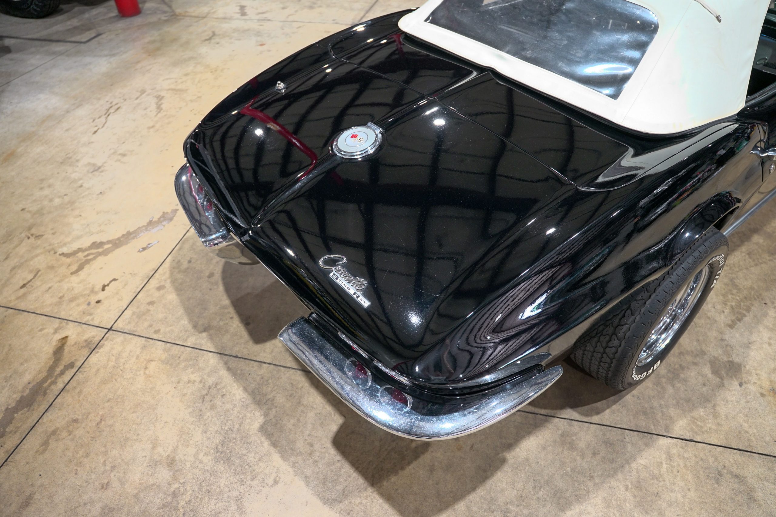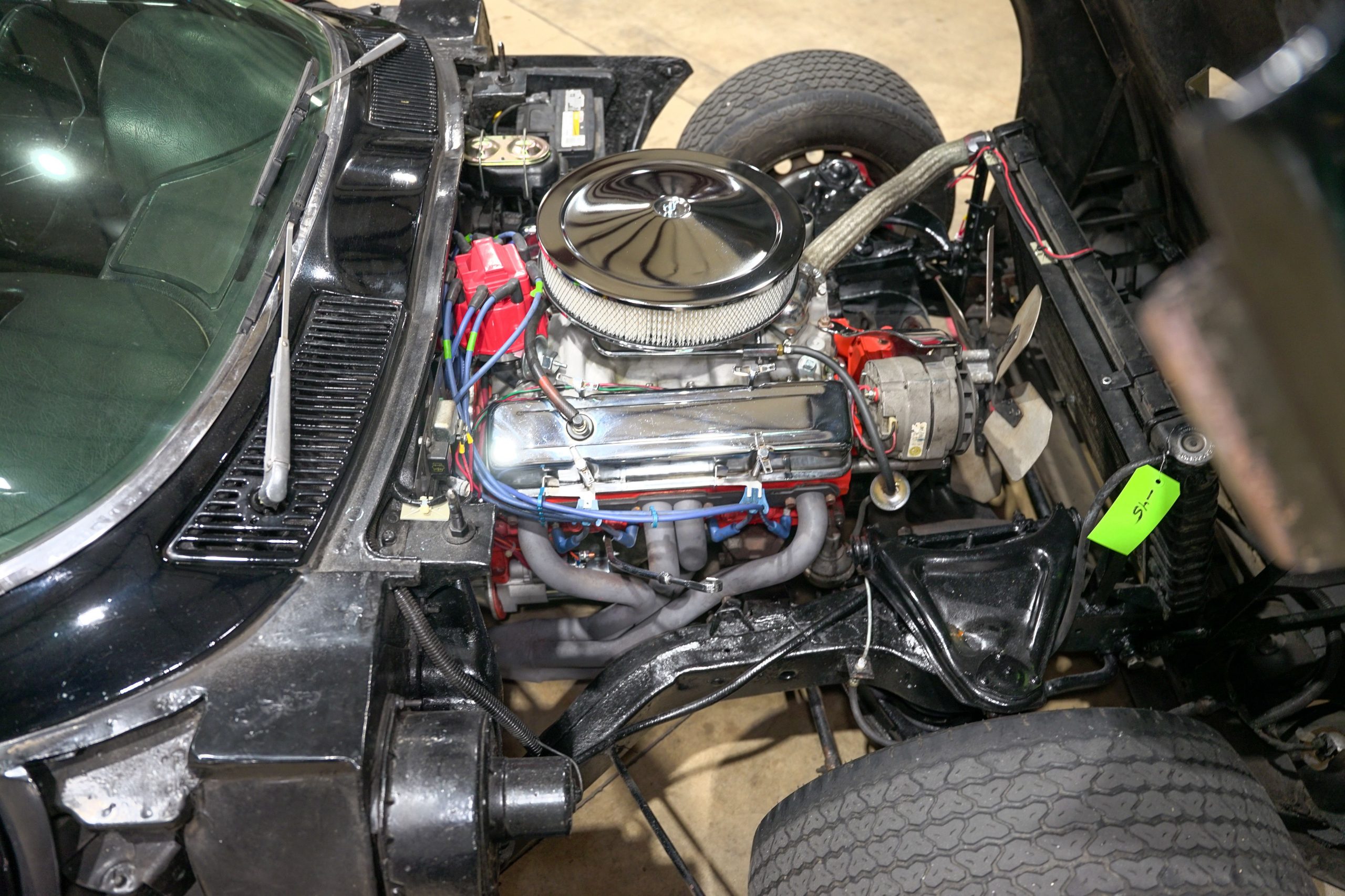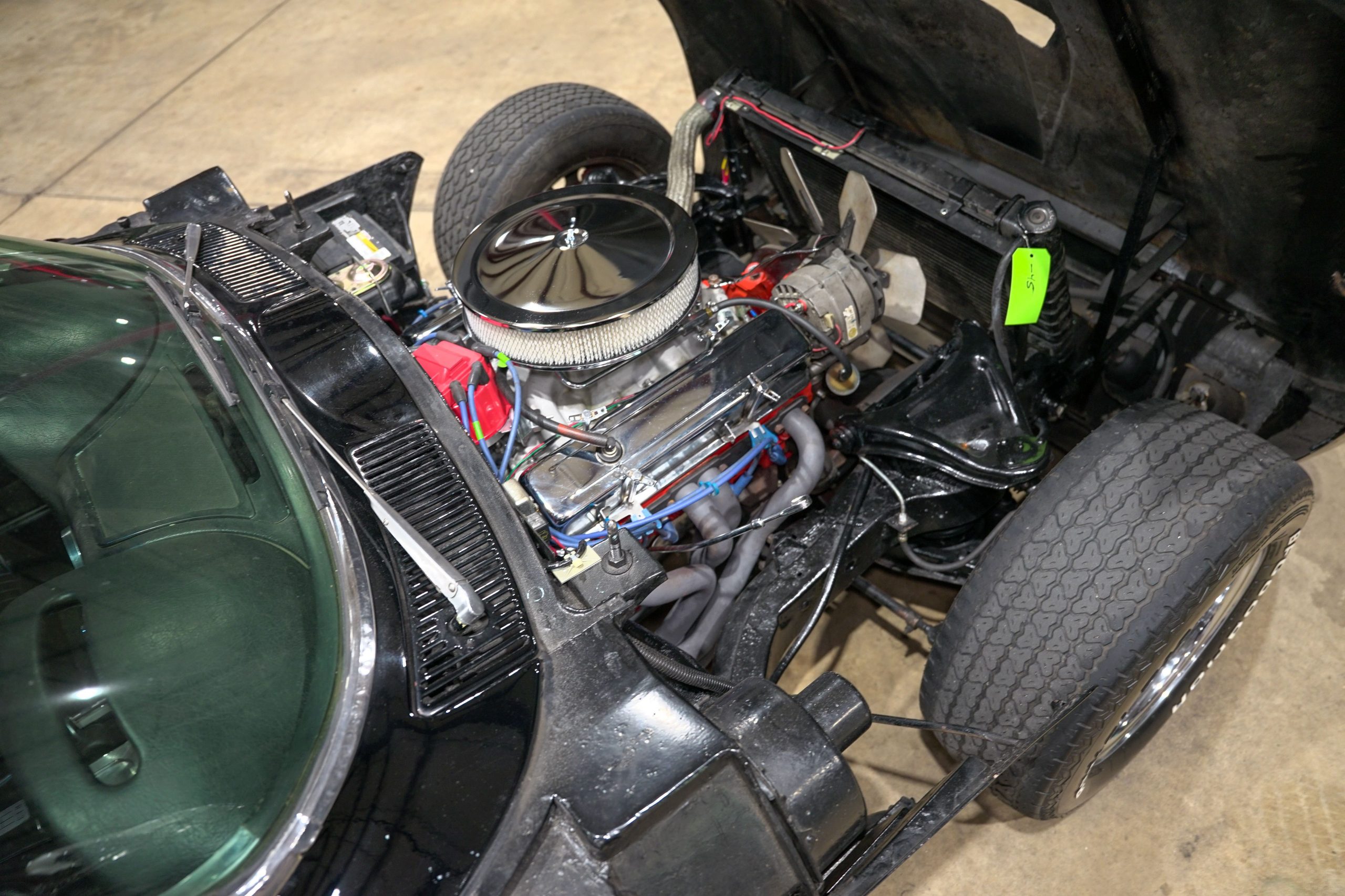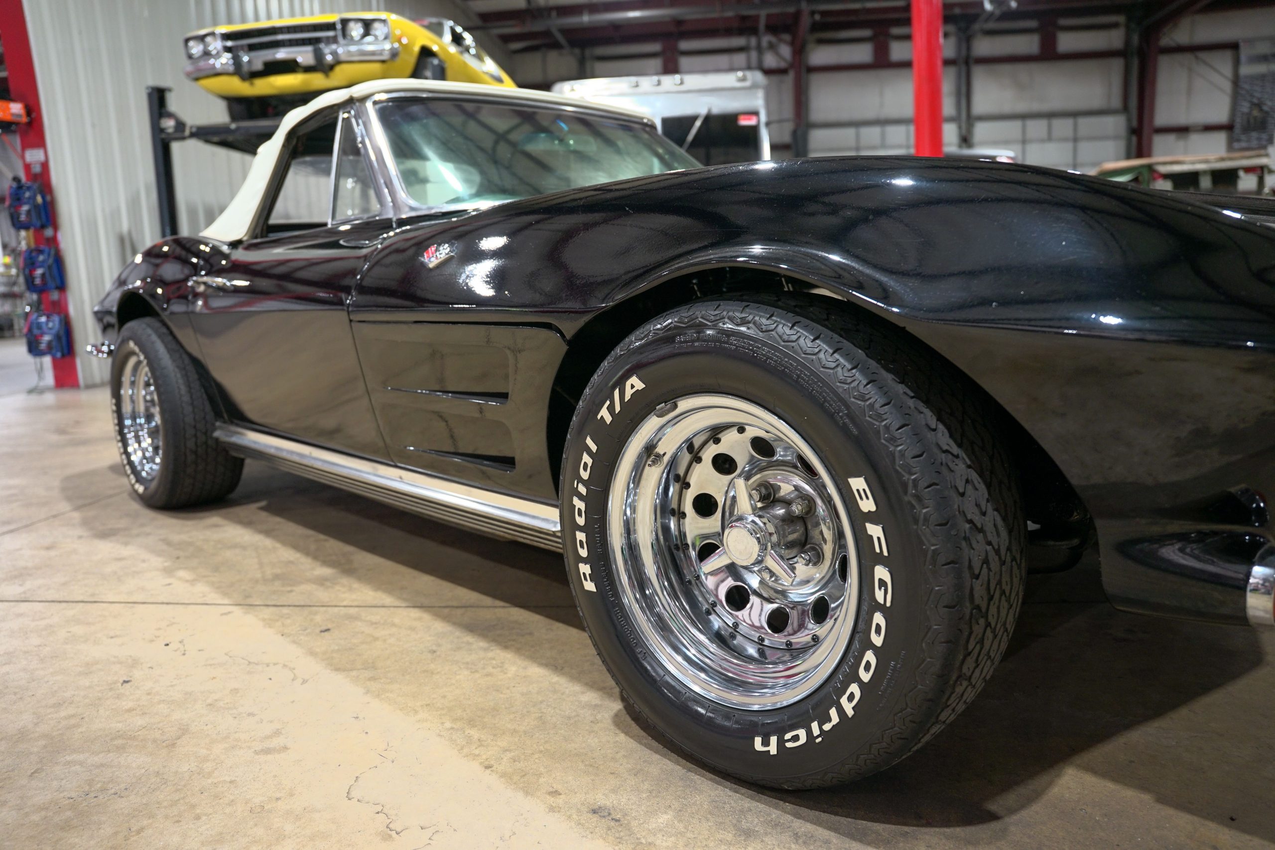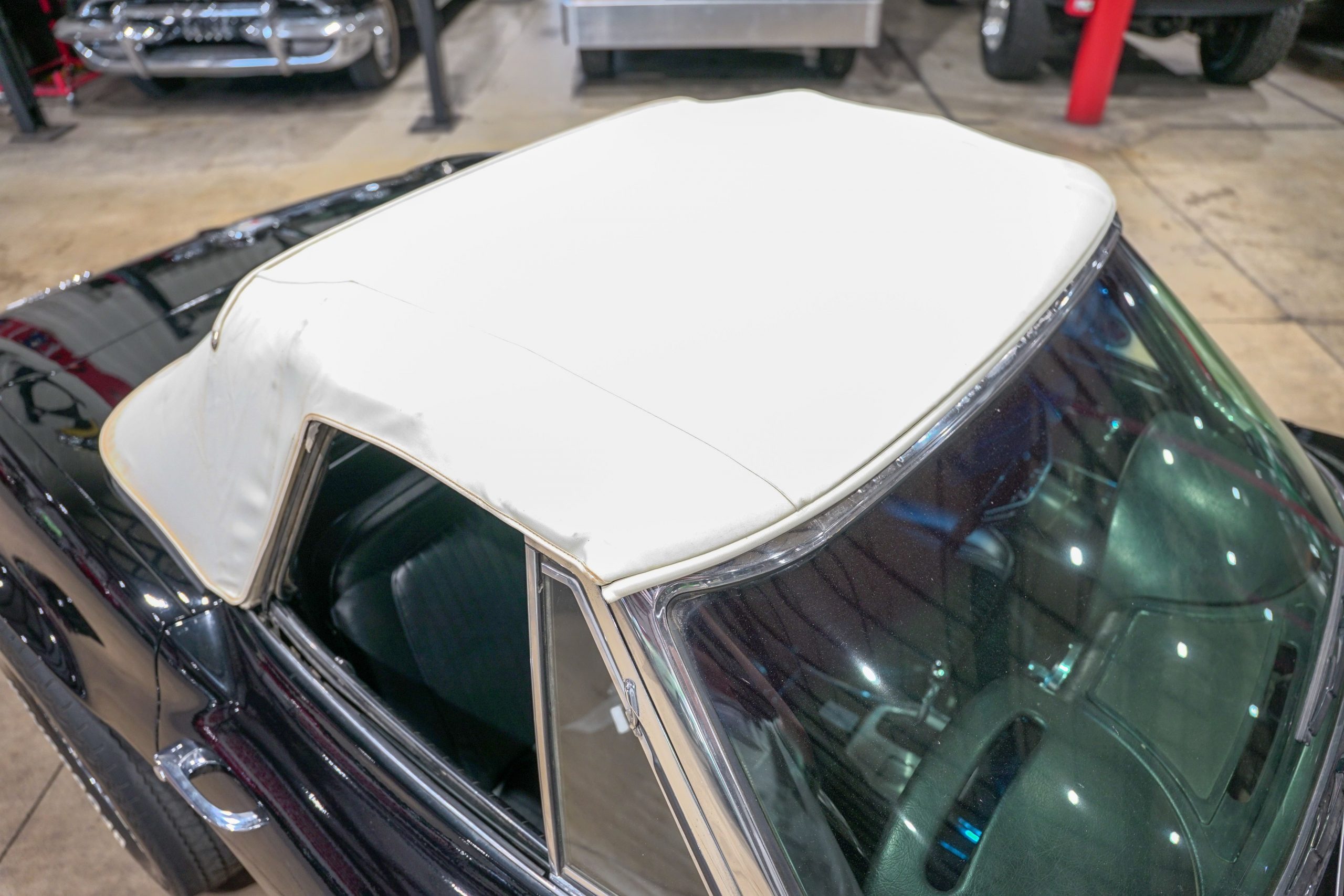 Other highlights include power steering, front disc brakes, AM / FM radio, clock, convertible soft top, one piece L88 style front hood, raised wheel wells, new black vinyl seat covers with new seat foams, high torque starter, Keystone style wheels, etc., all dressed in Tuxedo Black with White convertible top over black interior.