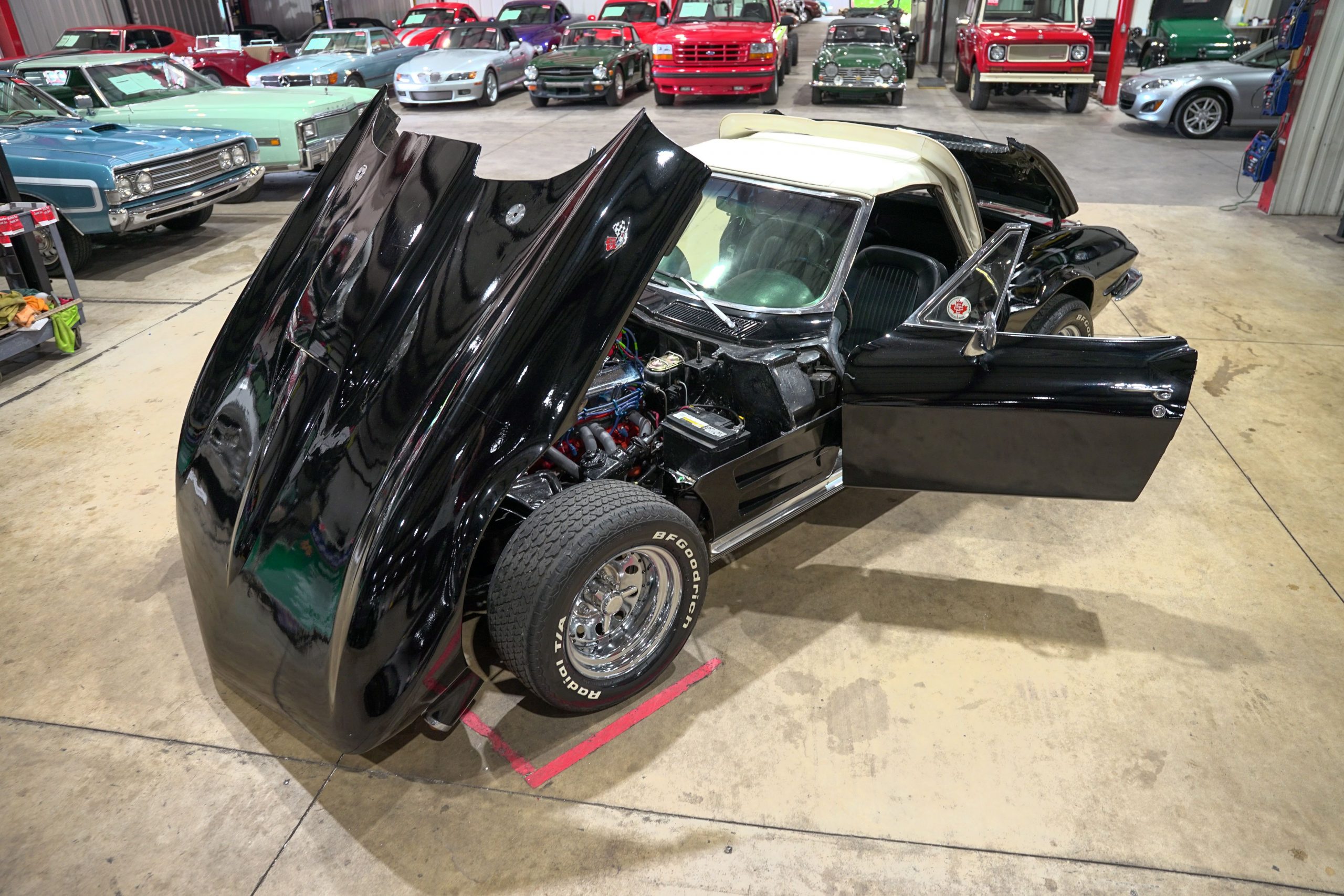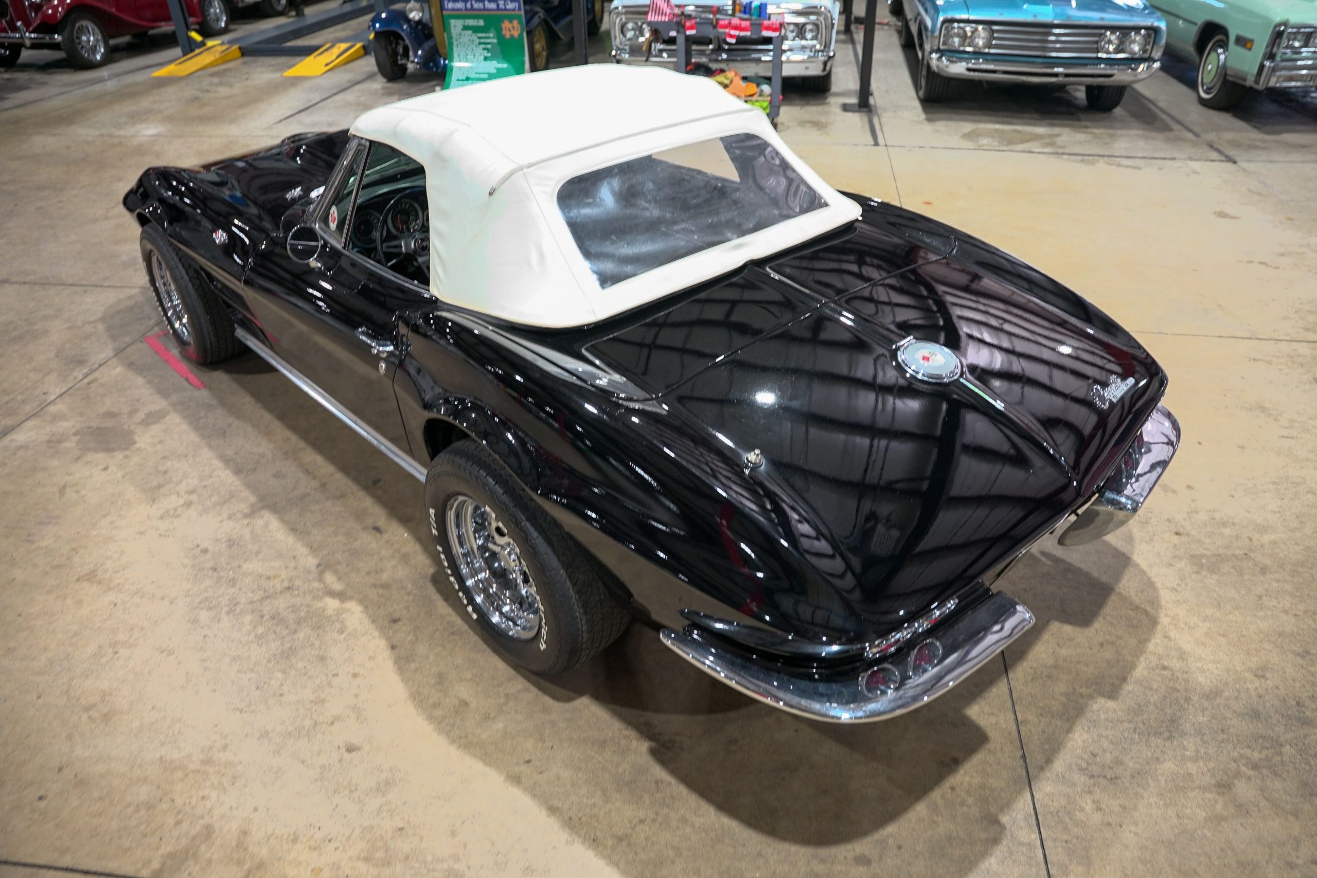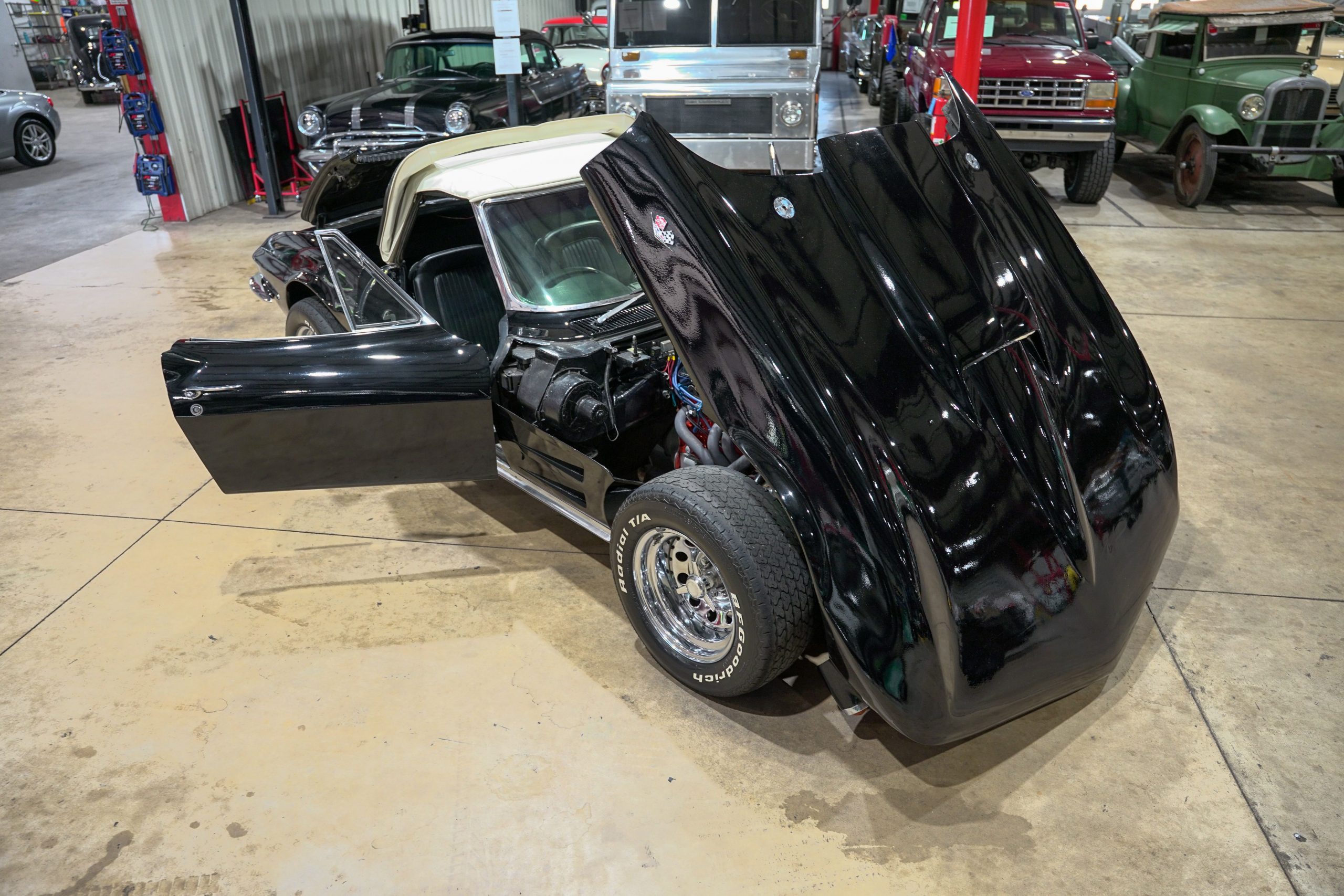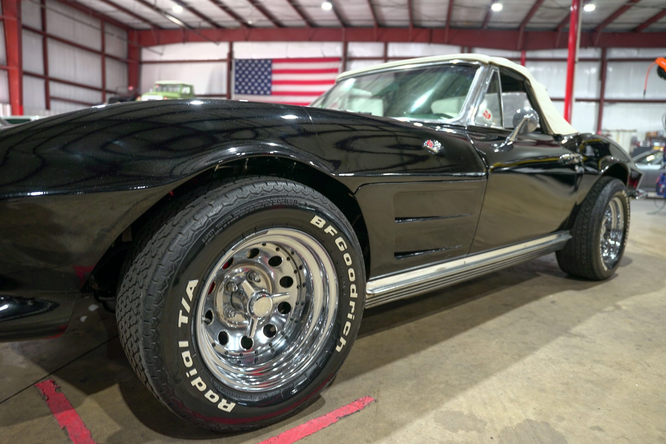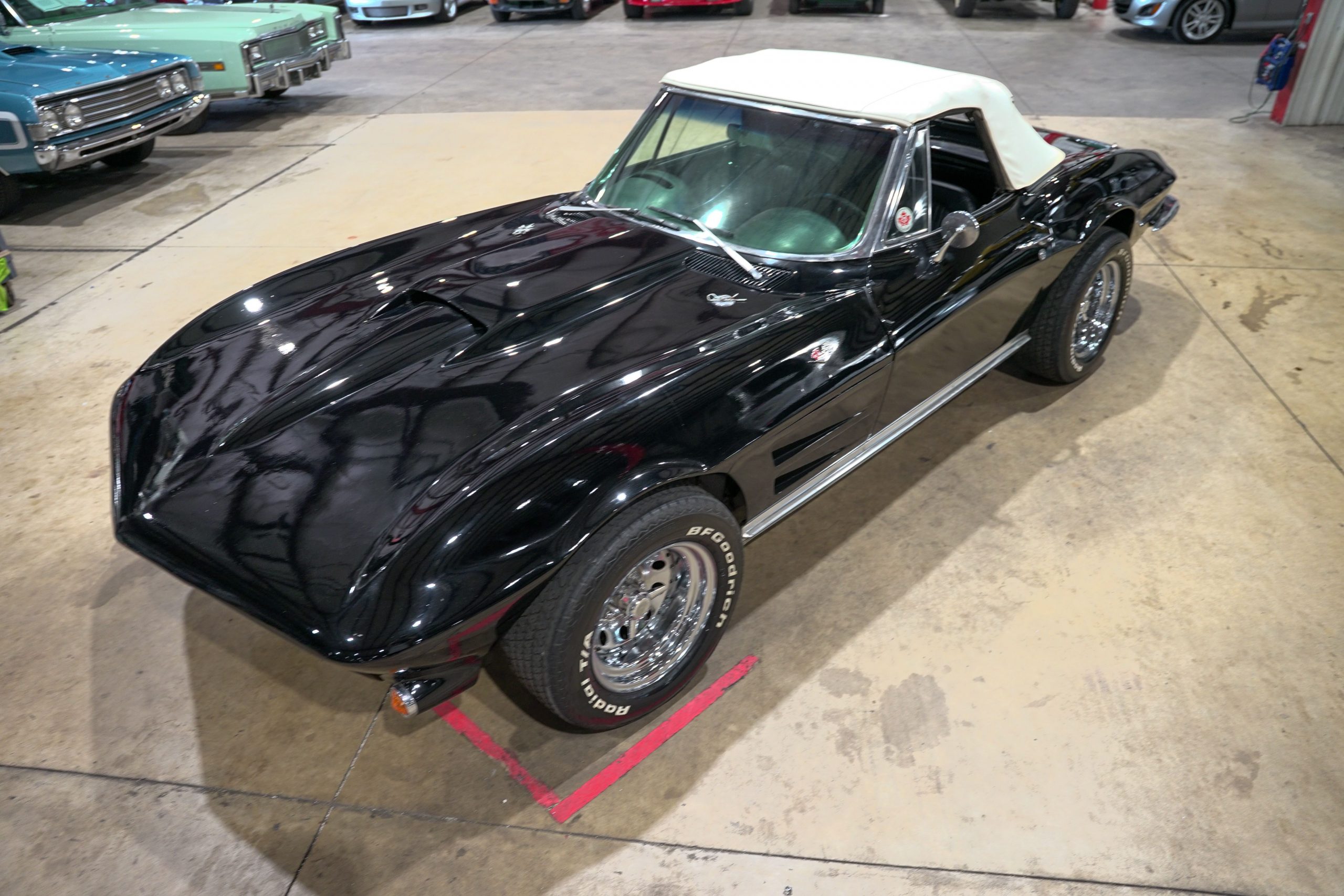 Other highlights include power steering, front disc brakes, AM / FM radio, clock, convertible soft top, one piece L88 style front hood, raised wheel wells, new black vinyl seat covers with new seat foams, high torque starter, Keystone style wheels, etc., all dressed in Tuxedo Black with White convertible top over black interior.