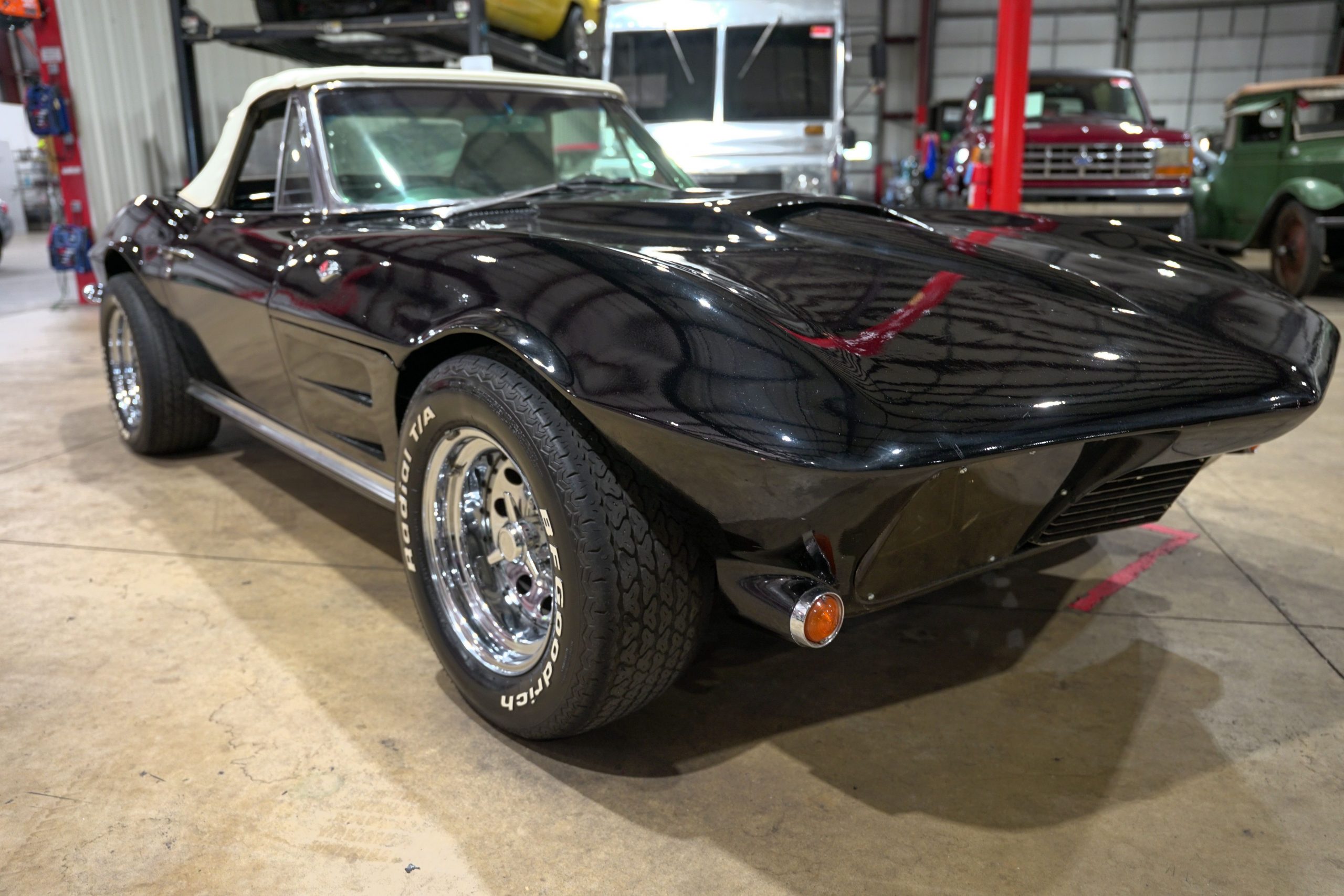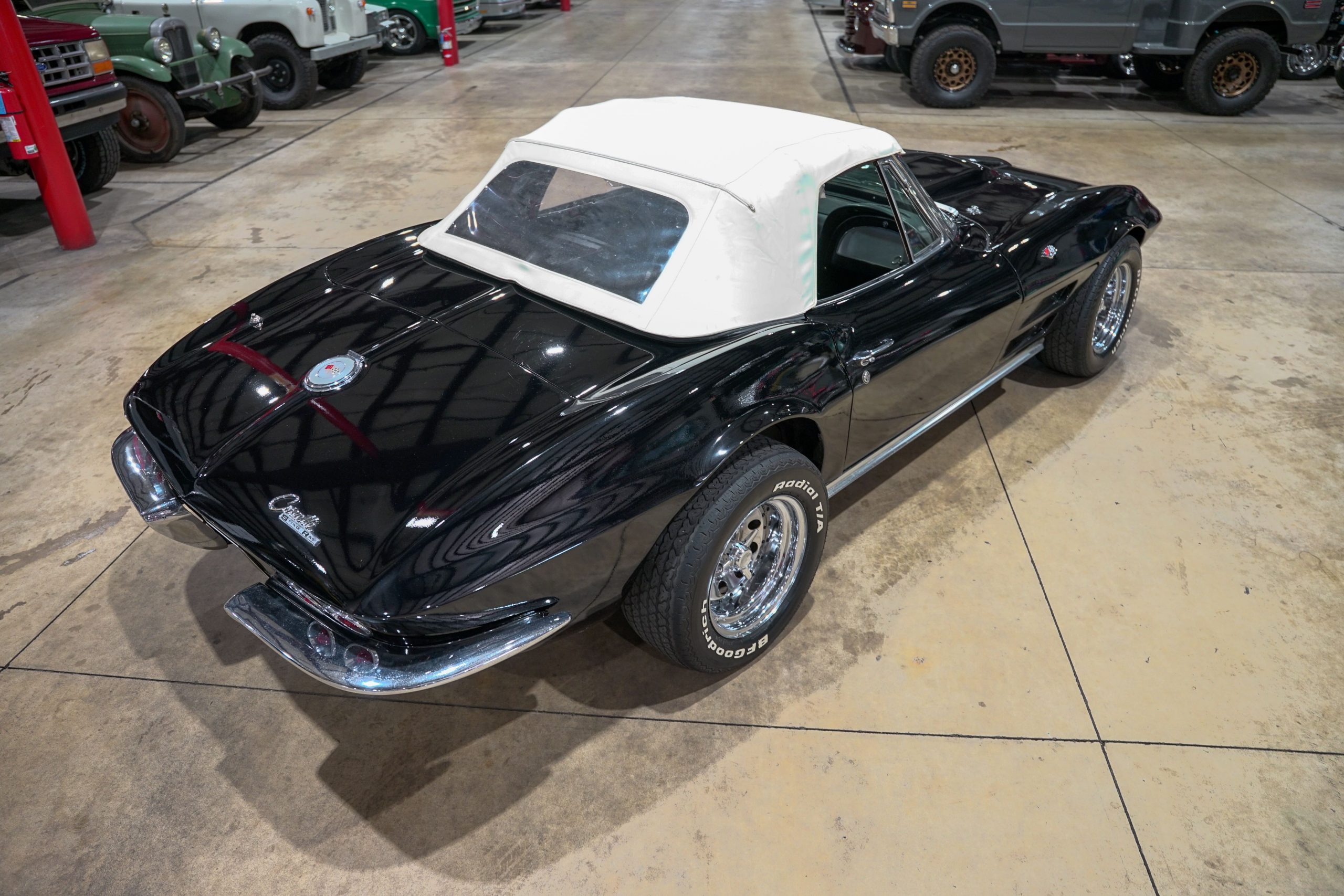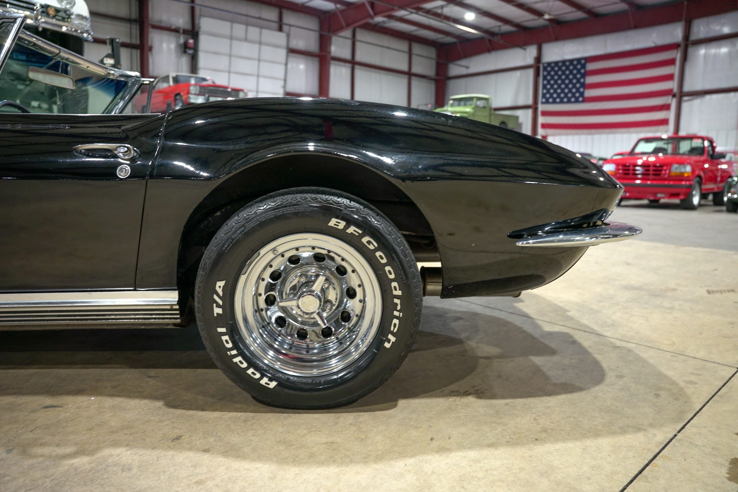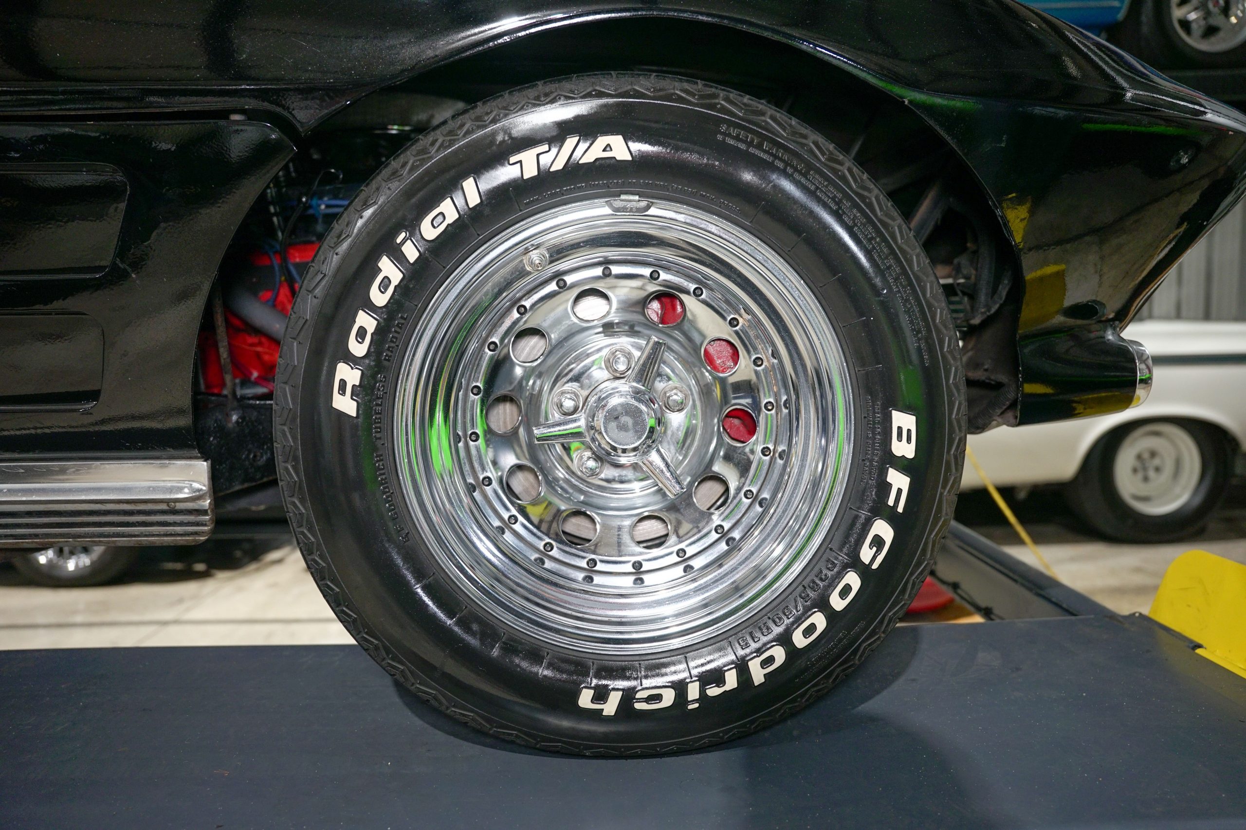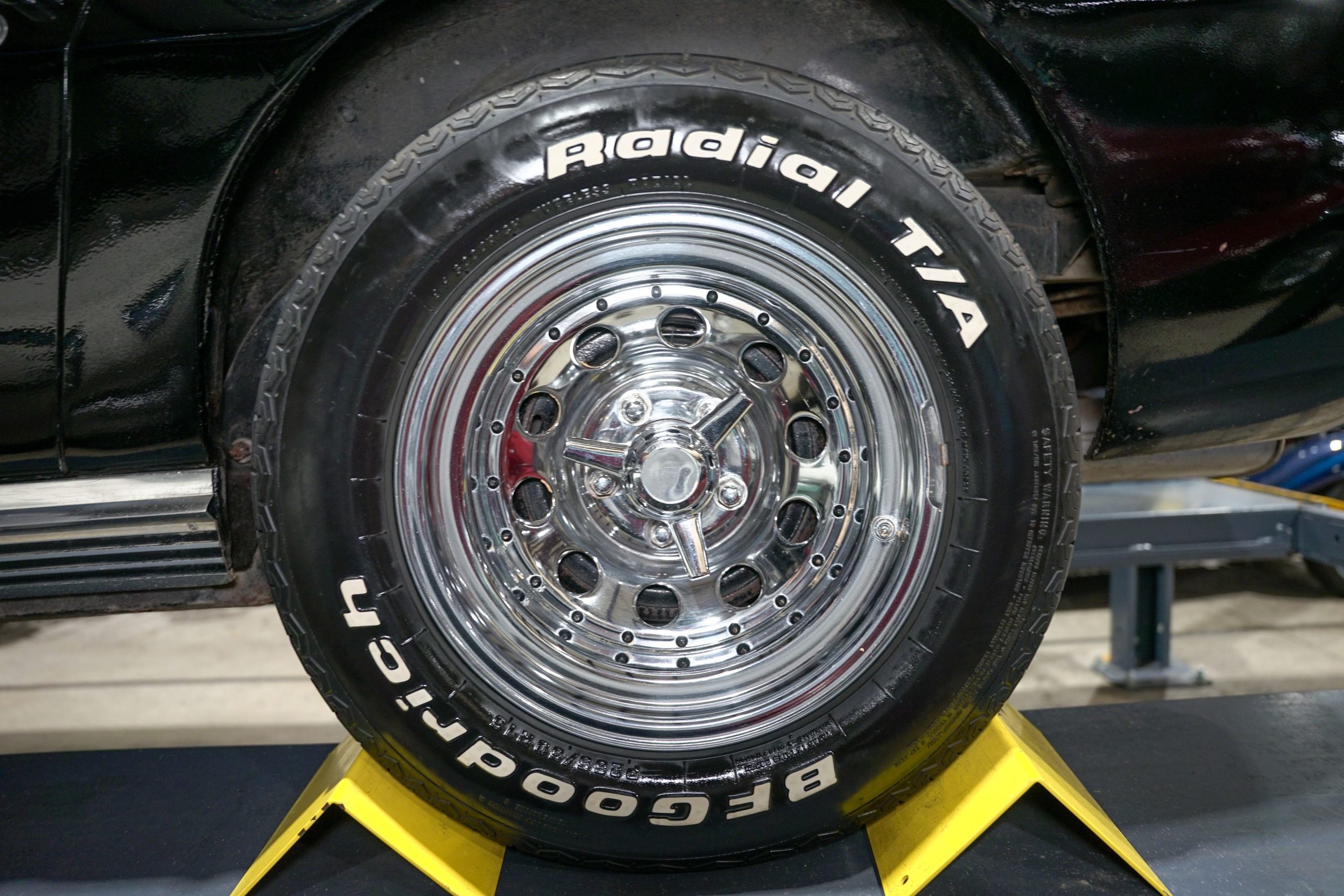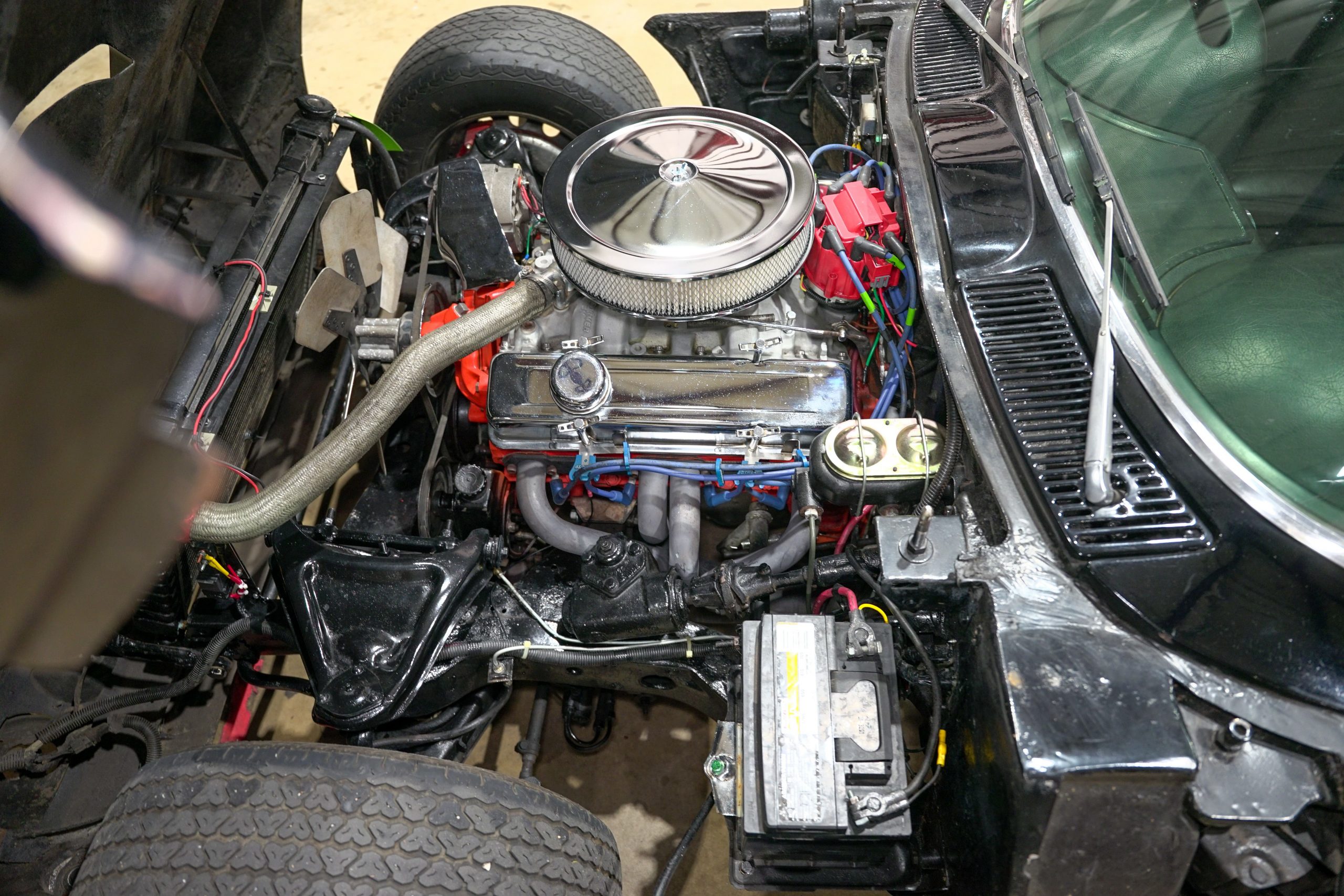 Other highlights include power steering, front disc brakes, AM / FM radio, clock, convertible soft top, one piece L88 style front hood, raised wheel wells, new black vinyl seat covers with new seat foams, high torque starter, Keystone style wheels, etc., all dressed in Tuxedo Black with White convertible top over black interior.
