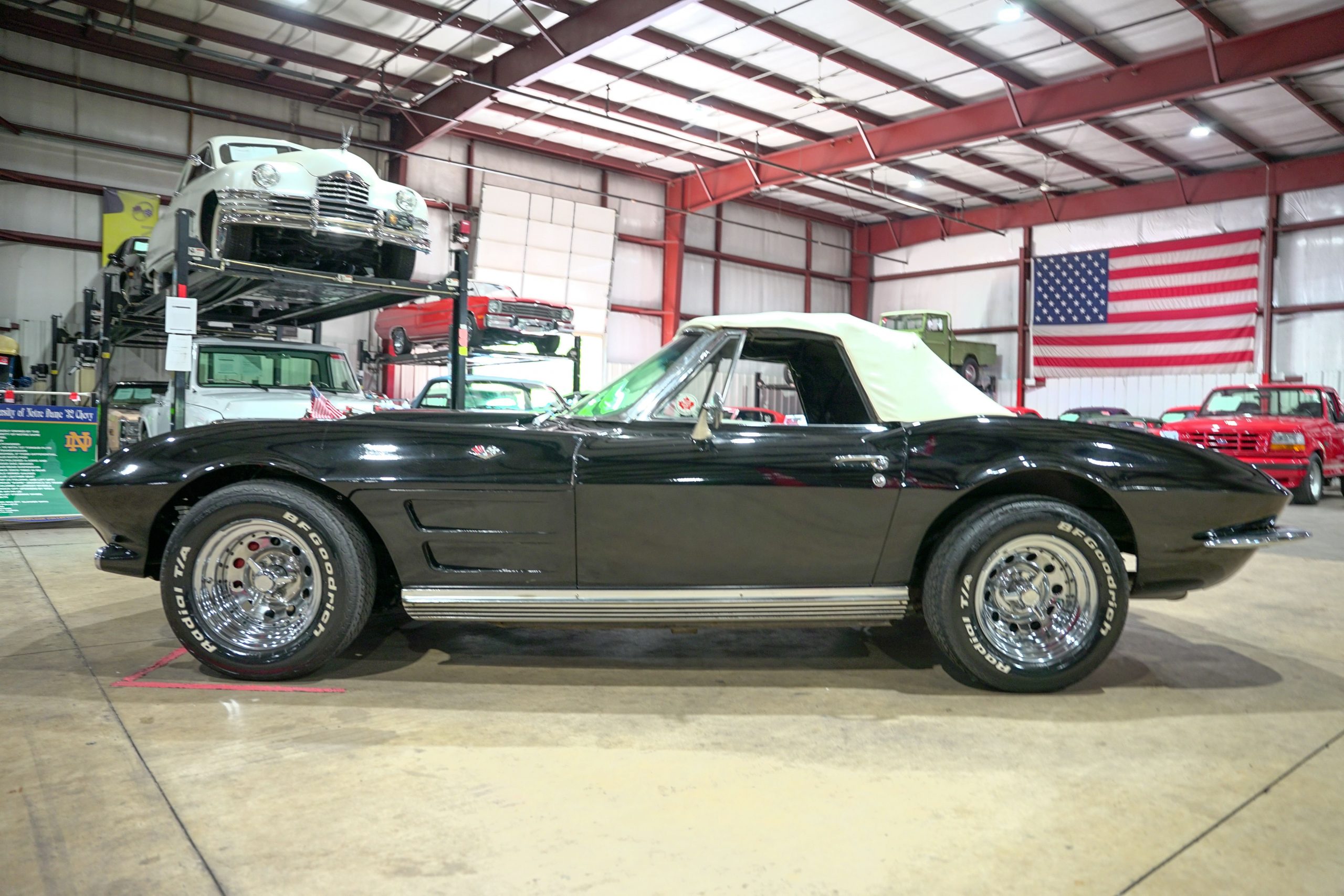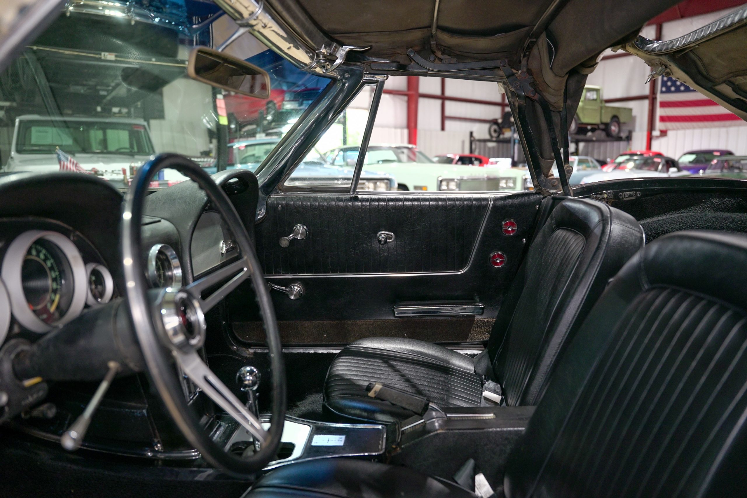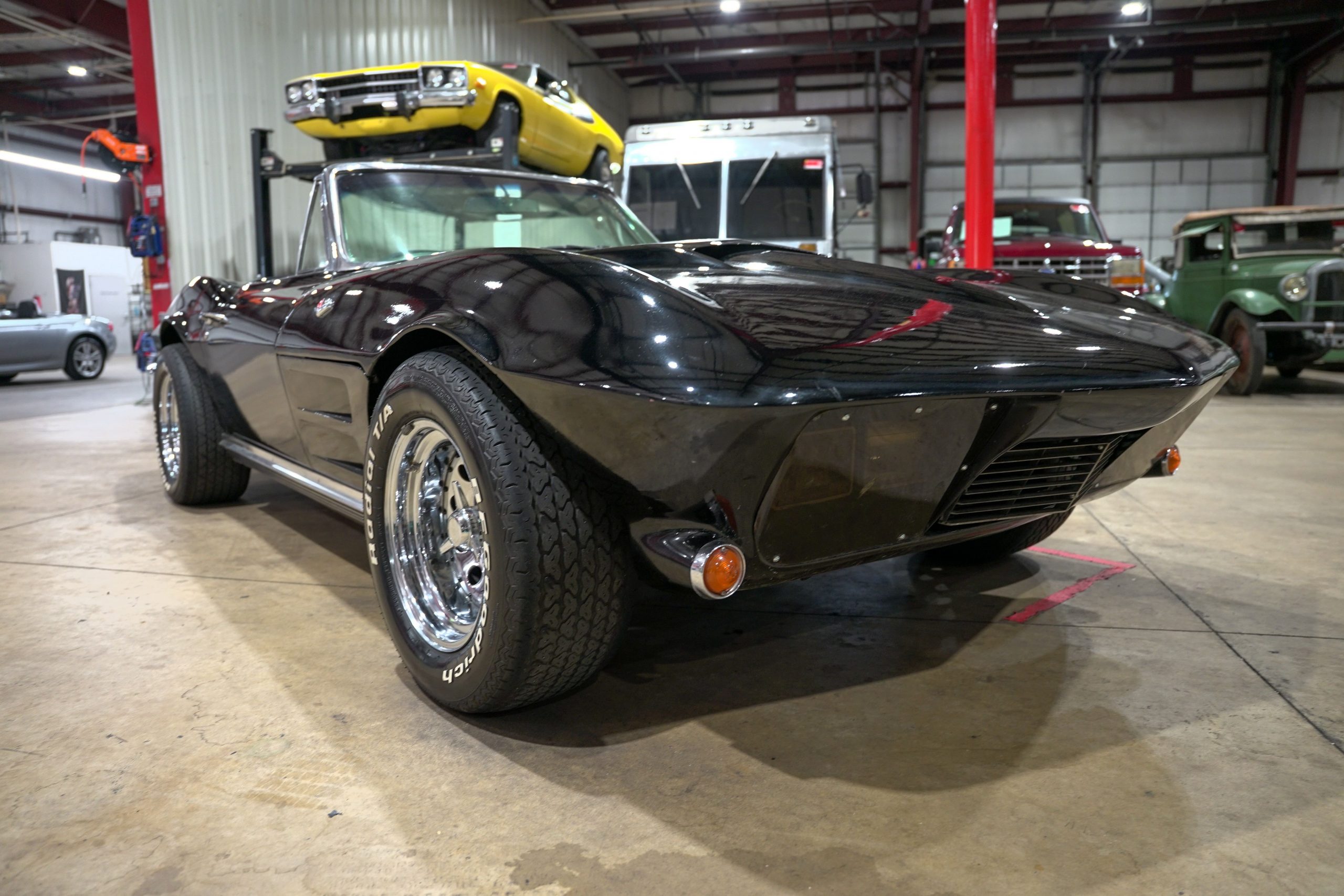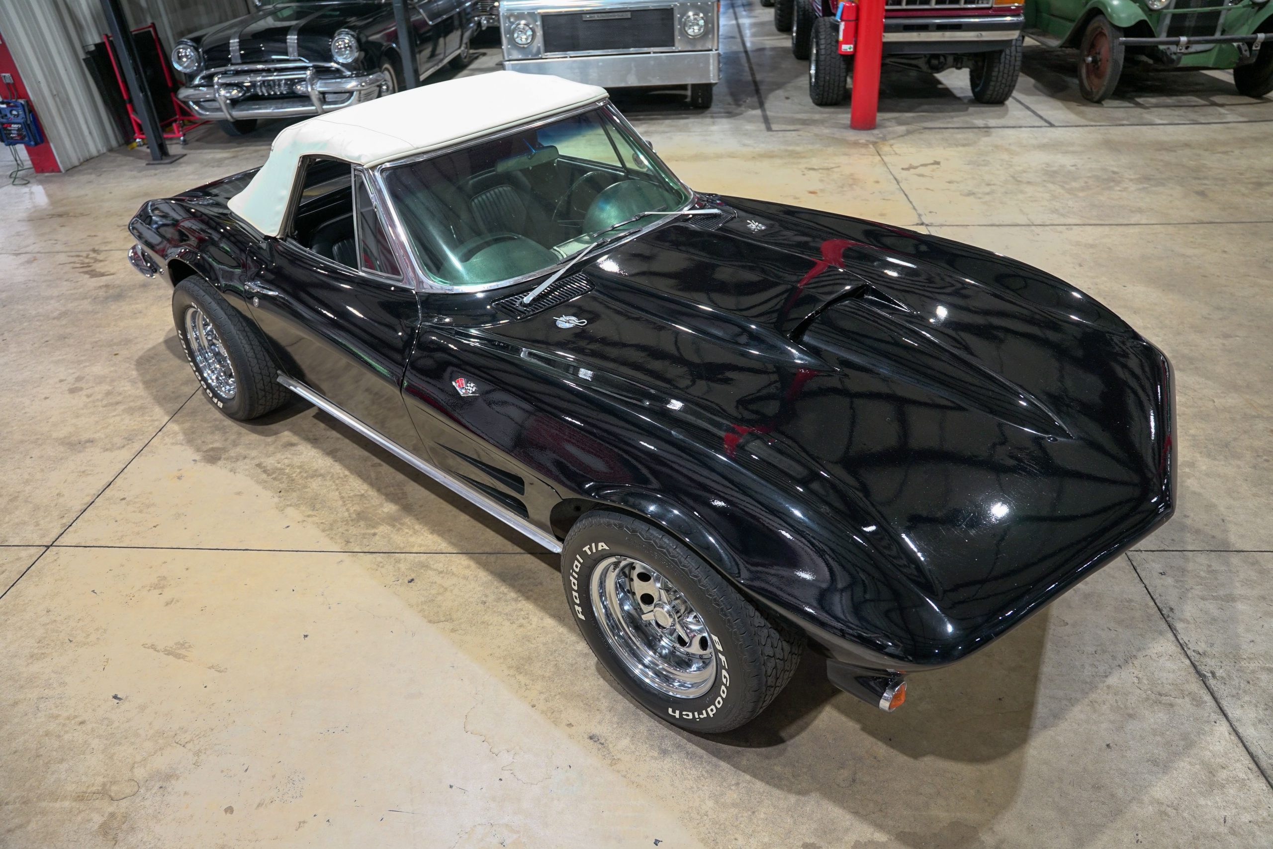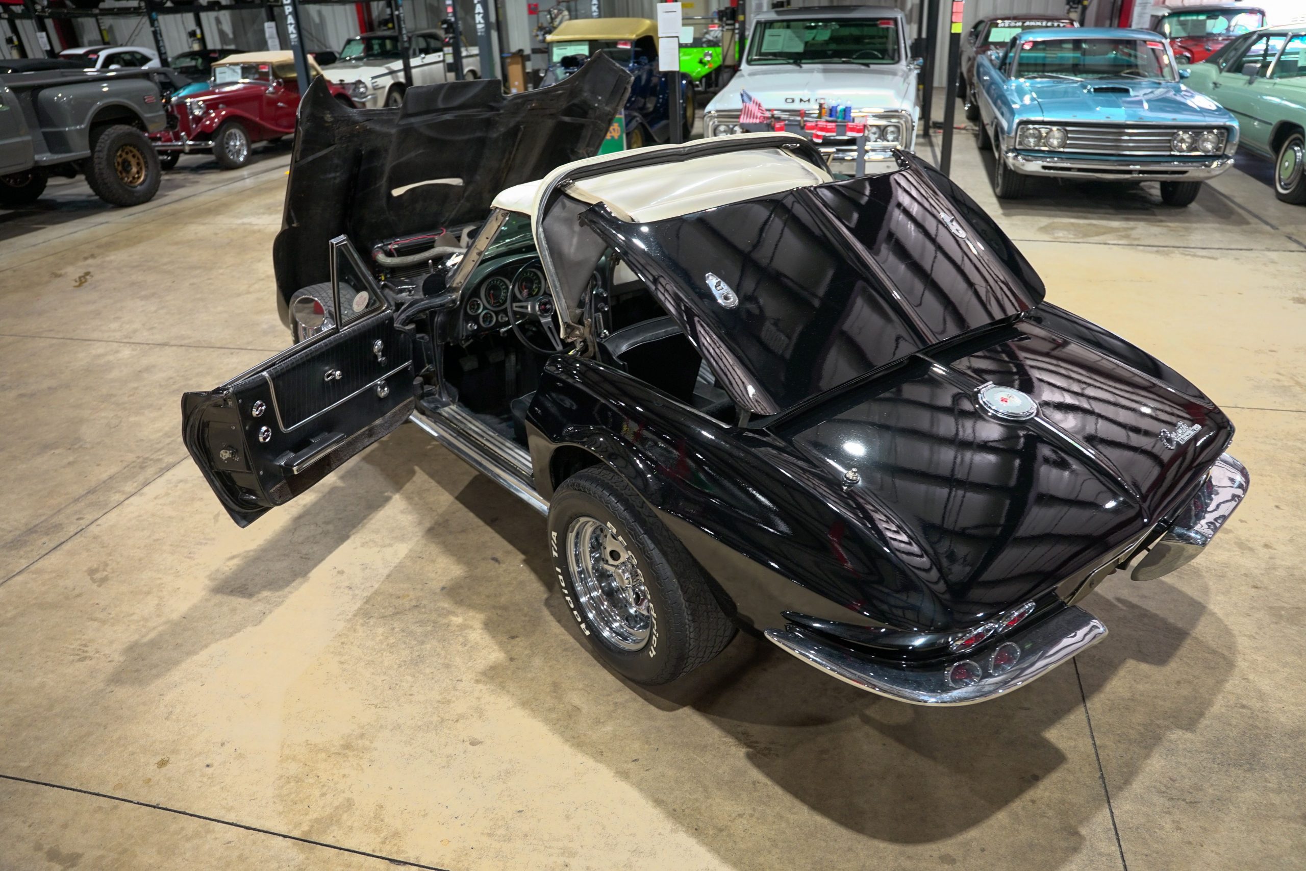 Other highlights include power steering, front disc brakes, AM / FM radio, clock, convertible soft top, one piece L88 style front hood, raised wheel wells, new black vinyl seat covers with new seat foams, high torque starter, Keystone style wheels, etc., all dressed in Tuxedo Black with White convertible top over black interior.