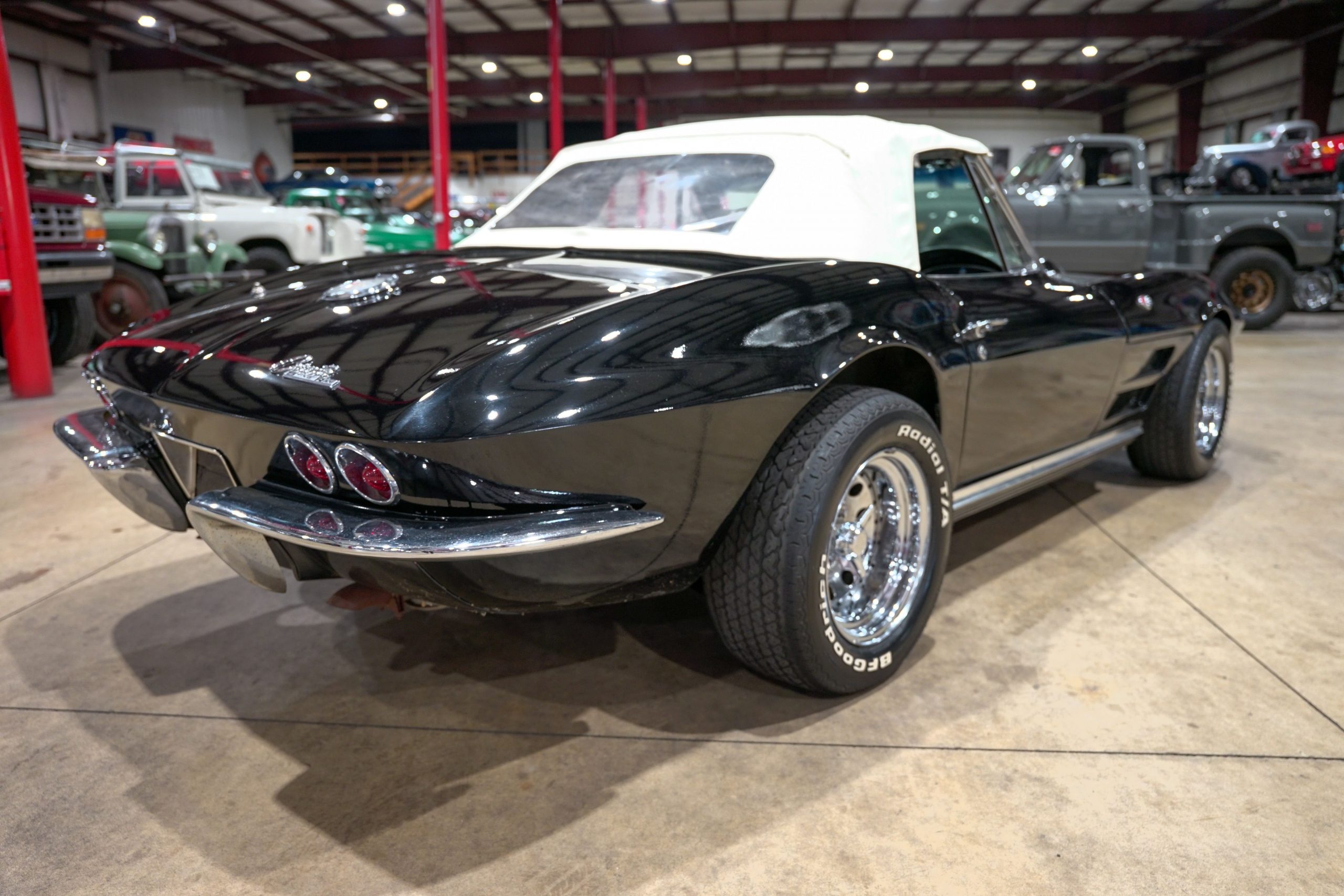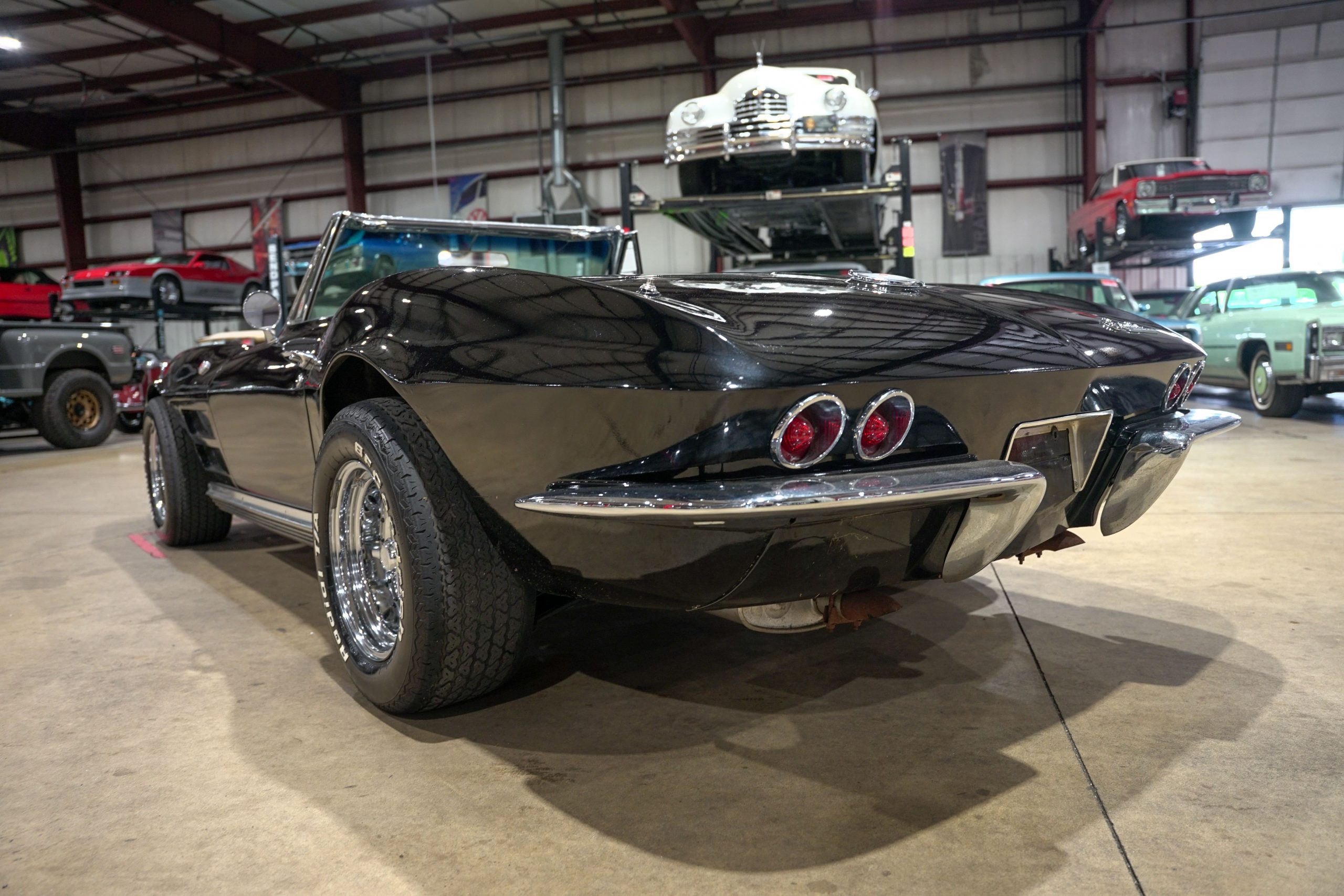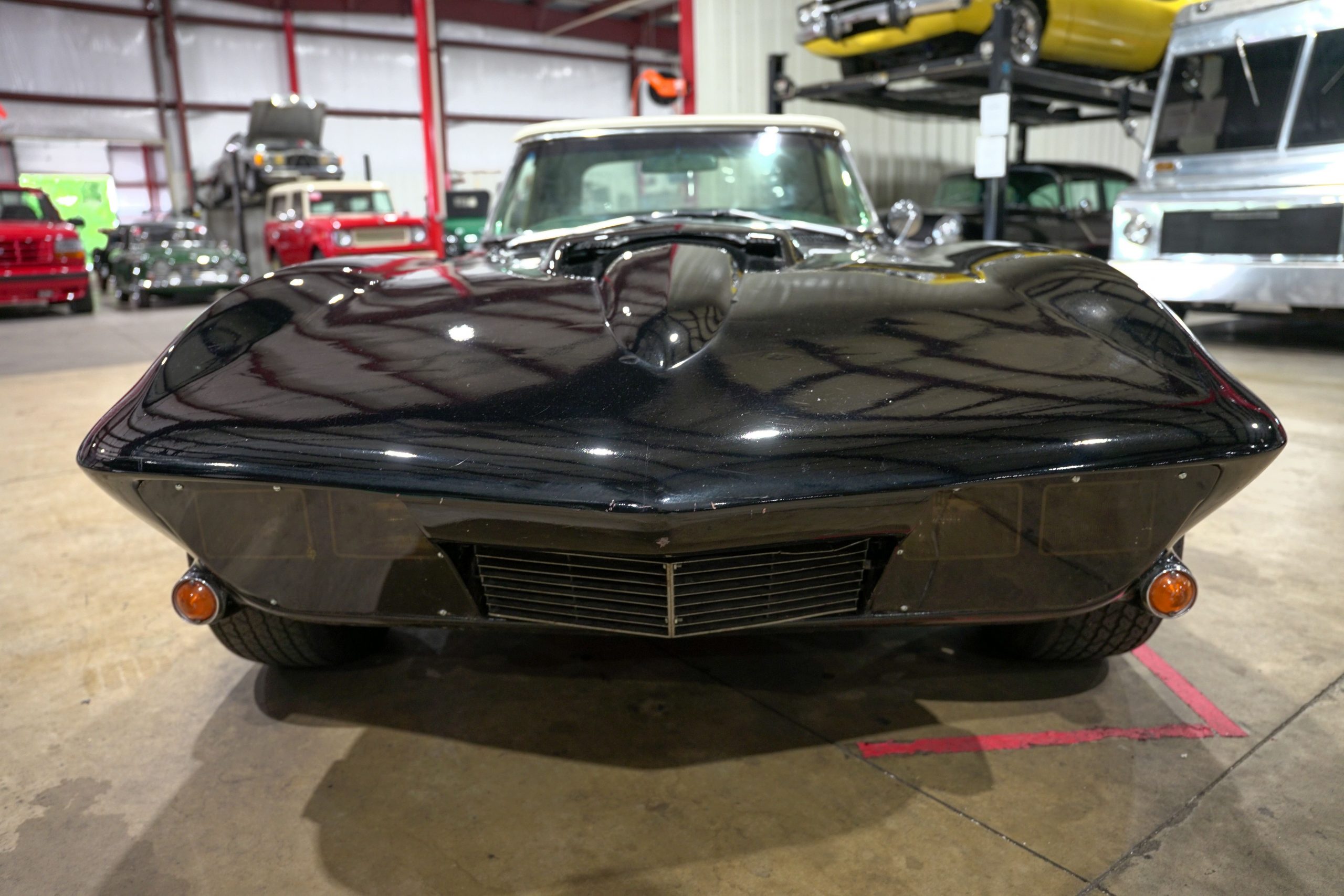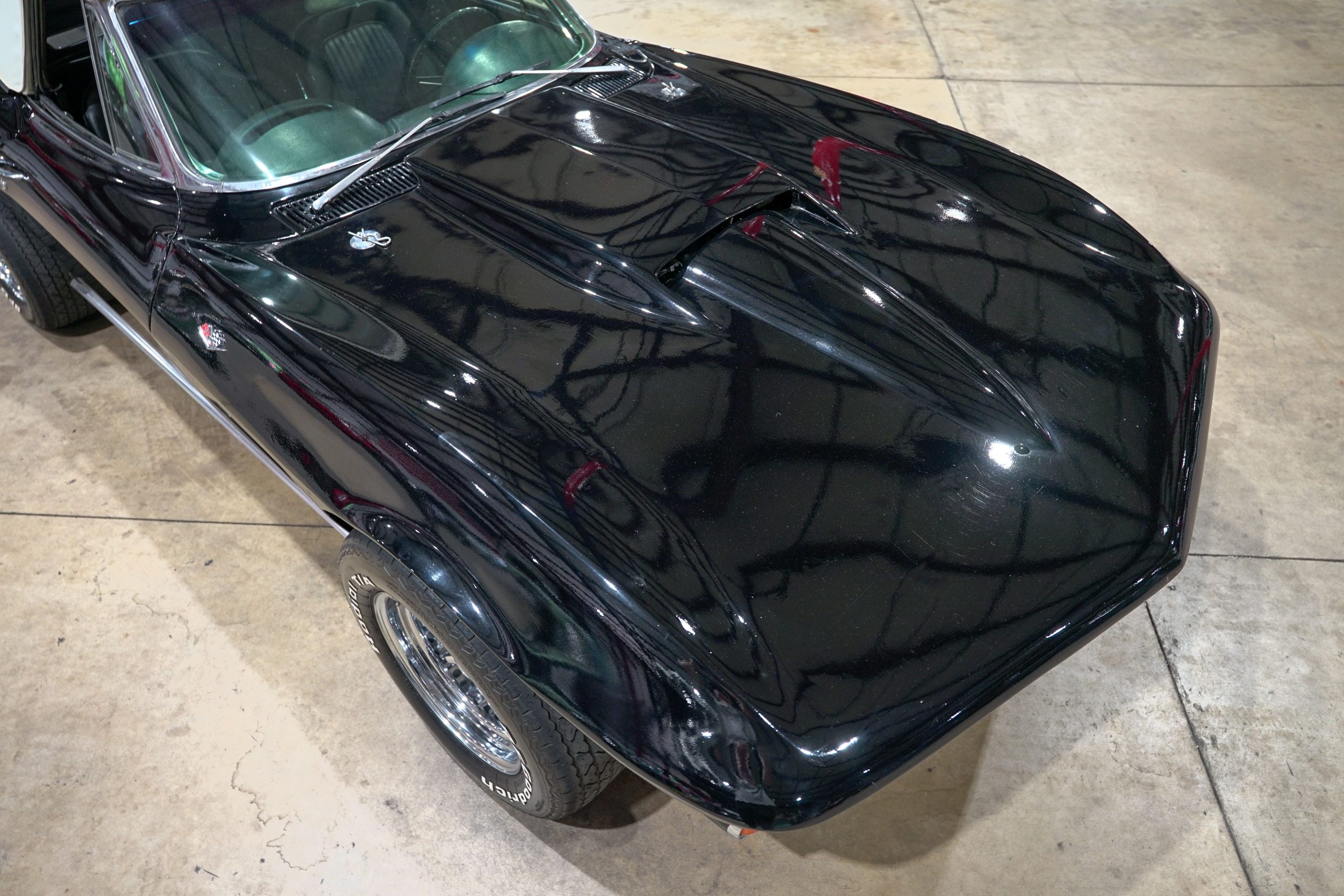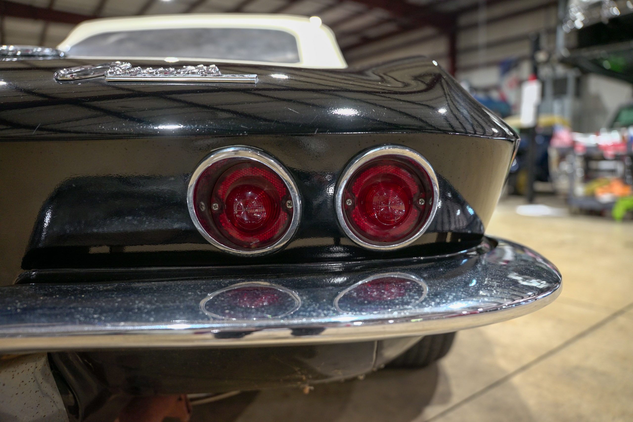 Other highlights include power steering, front disc brakes, AM / FM radio, clock, convertible soft top, one piece L88 style front hood, raised wheel wells, new black vinyl seat covers with new seat foams, high torque starter, Keystone style wheels, etc., all dressed in Tuxedo Black with White convertible top over black interior.