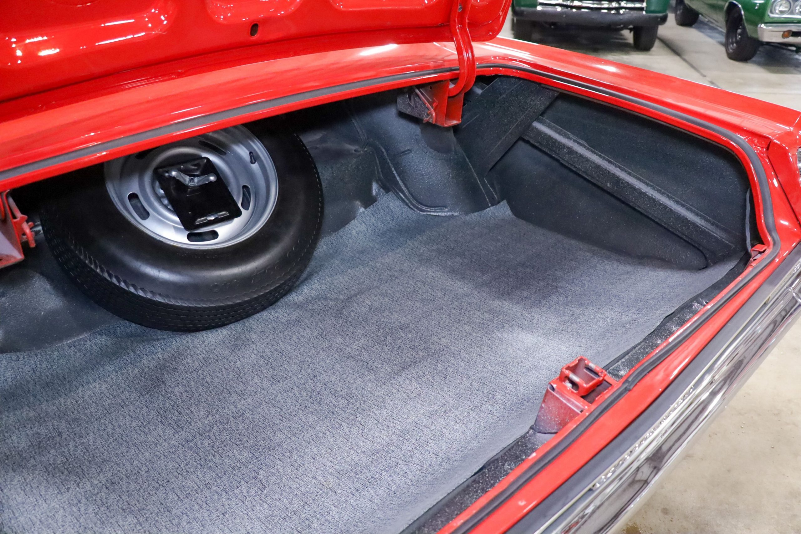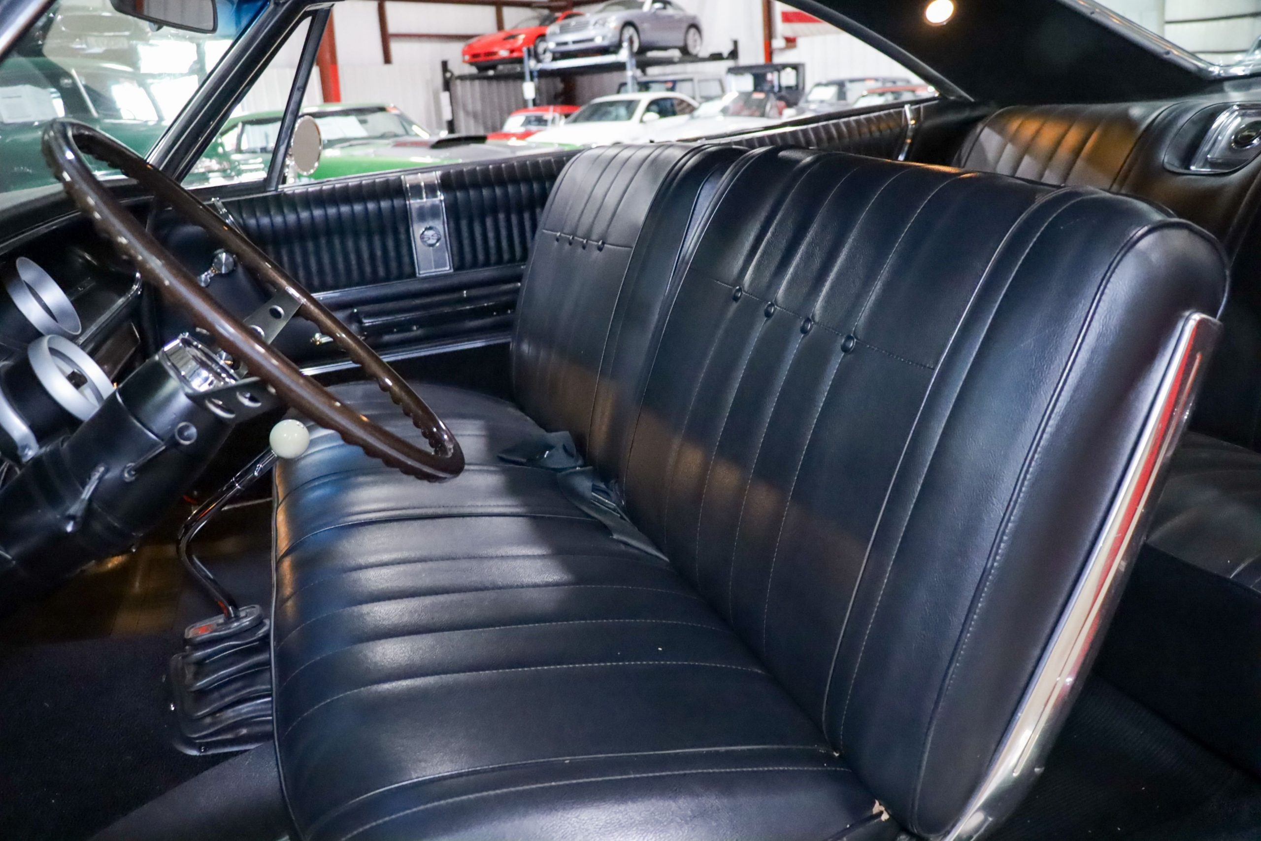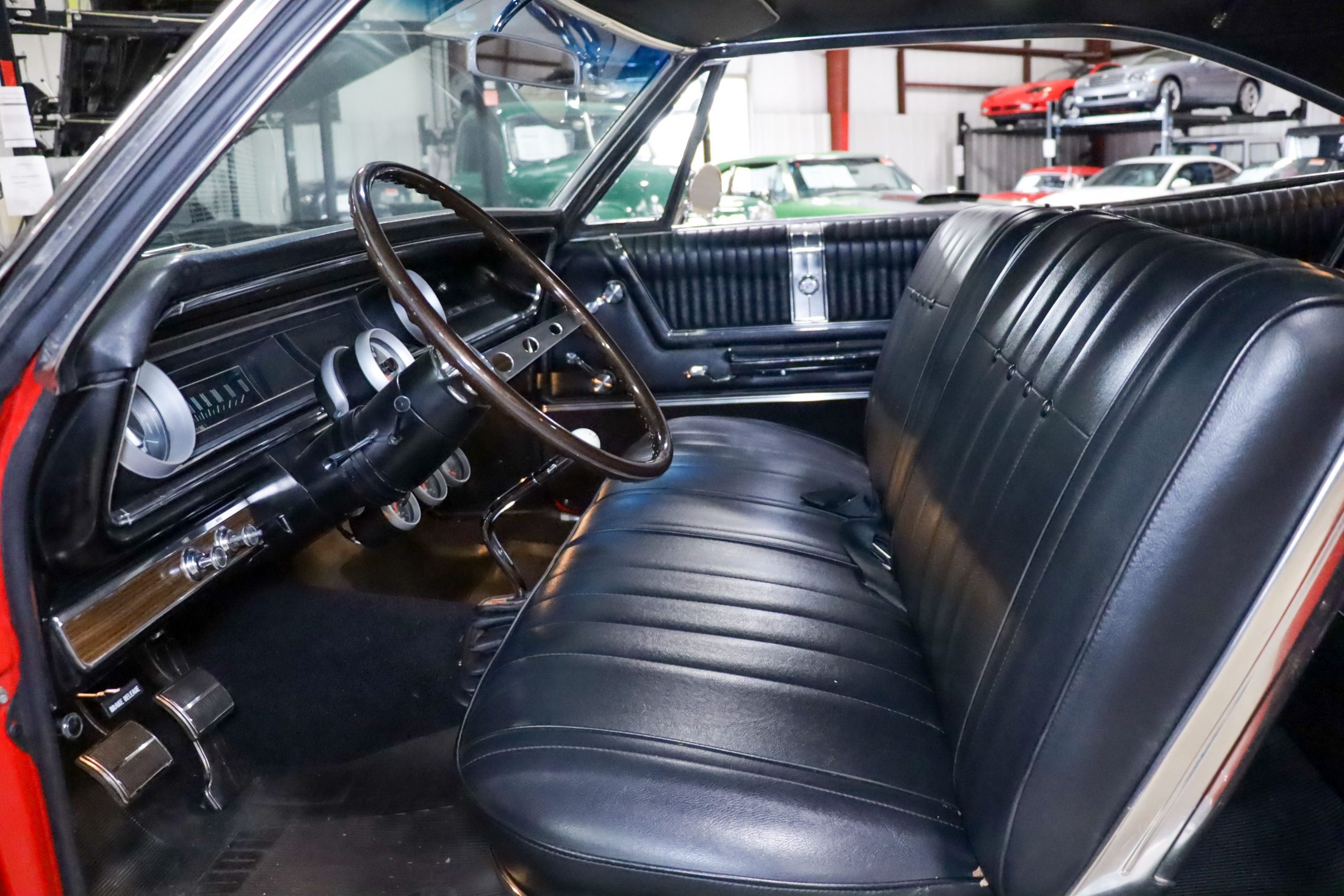 Dressed in a vibrant Rally Red exterior, the Impala exudes confidence and stands out with its timeless, bold lines that capture the essence of 1960s American design. The car’s striking appearance is enhanced by chrome accents and iconic badging that pay homage to its Super Sport heritage. Inside, the black leather interior is equally impressive, offering a sophisticated and comfortable space with bucket seats, classic styling, and detailed finishes that make every drive feel like a special occasion.