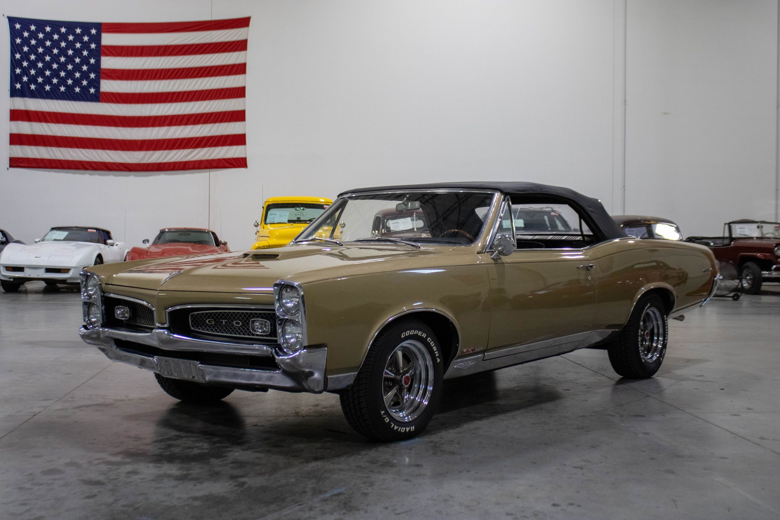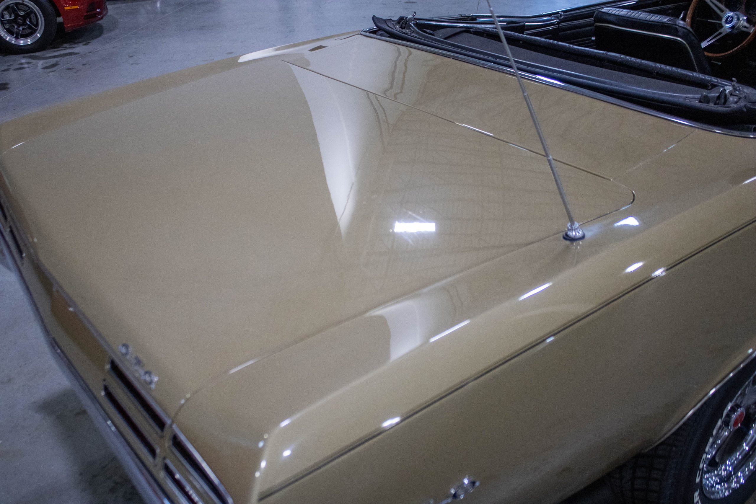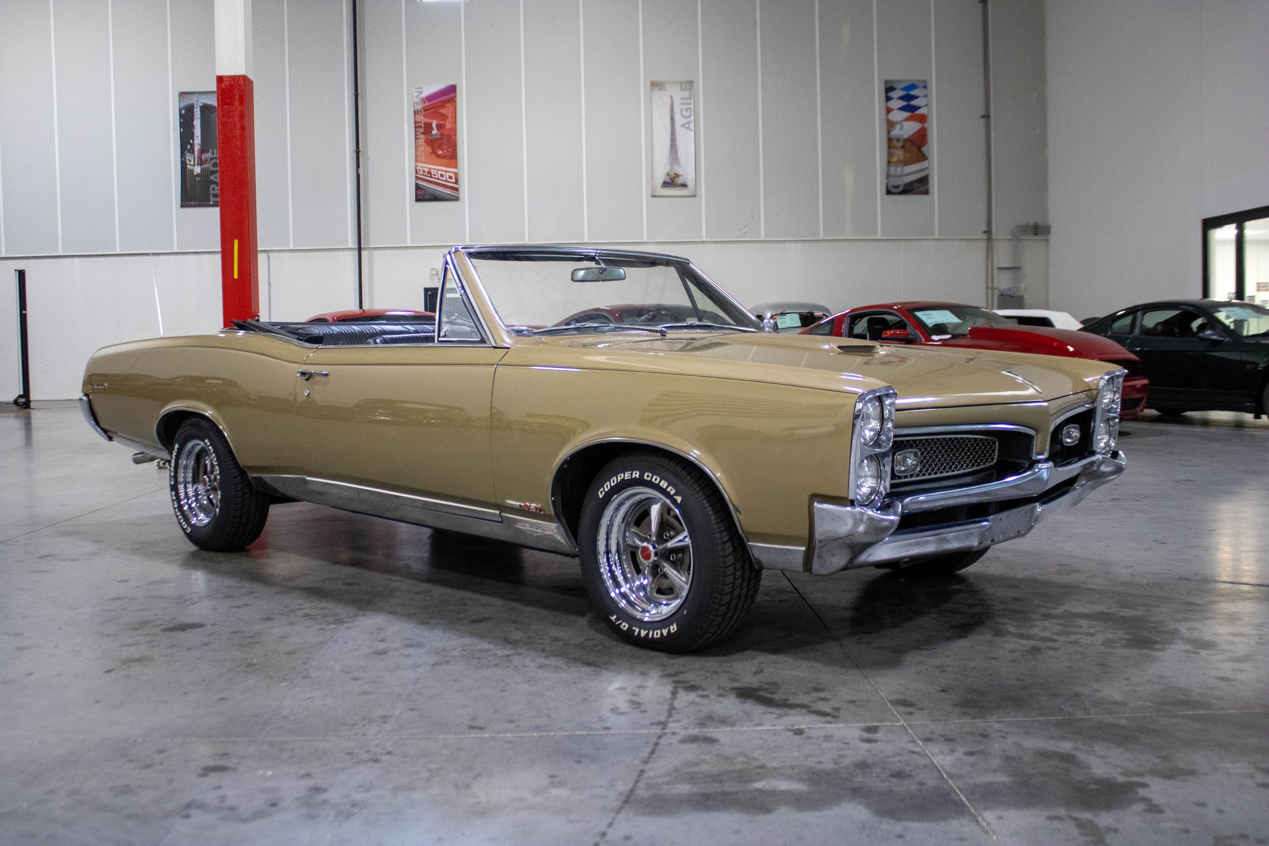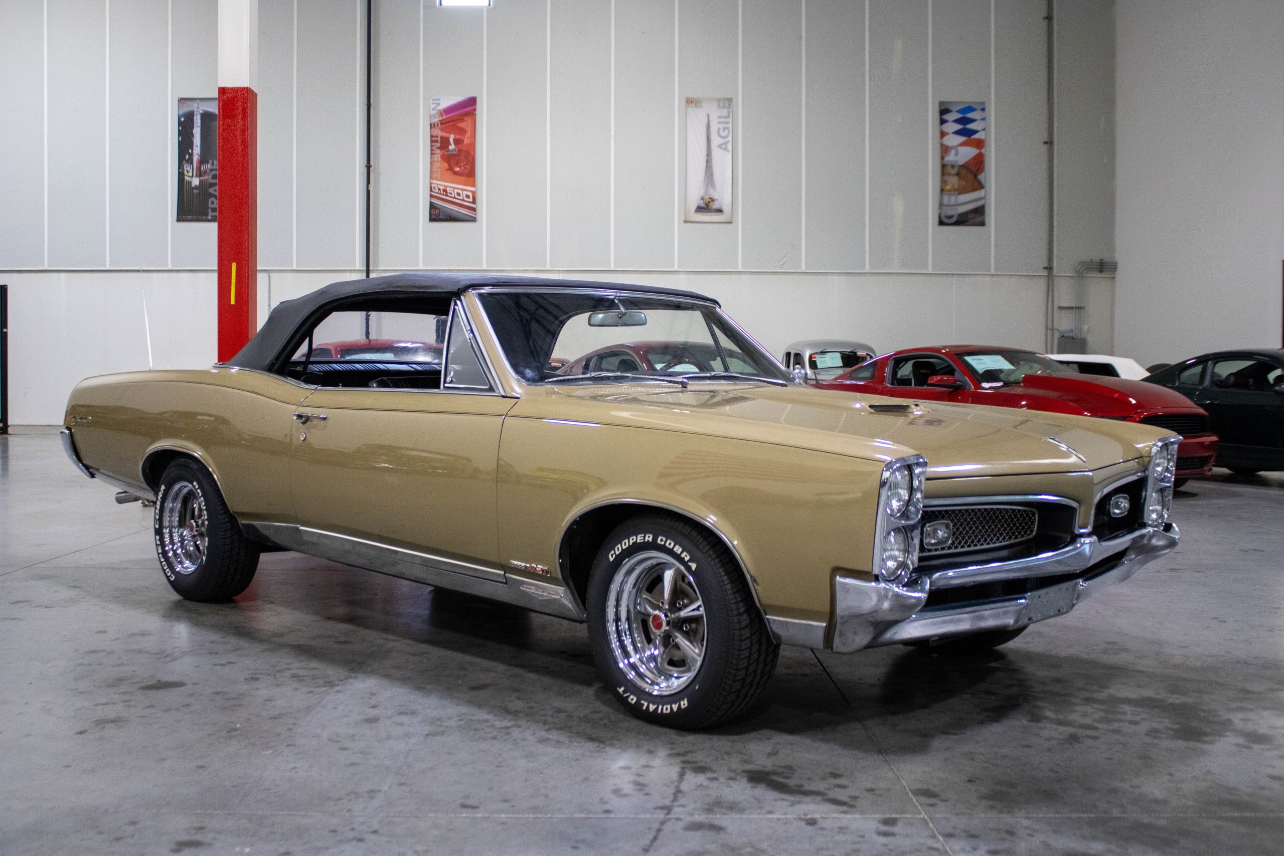 This 1967 Pontiac GTO is a beautifully restored example of classic American muscle, finished in a refined Champagne Poly exterior that contrasts perfectly with its sleek black interior. It sits confidently on chrome Pontiac Rally wheels, giving it a timeless and aggressive stance. The interior is enhanced with a custom steering wheel and a Hurst shifter, adding a performance-focused touch to the driver experience. Under the hood lies a powerful 421 V8 engine fitted with 670 cylinder heads and a new, numbers-correct 1966 Tri-Power carburetor setup—delivering both era-authentic performance and throaty muscle car sound. A rebuilt front end, new front brakes, and rear air shocks contribute to the car’s roadworthiness and handling, while a 400 Turbo transmission ensures smooth, reliable shifting.