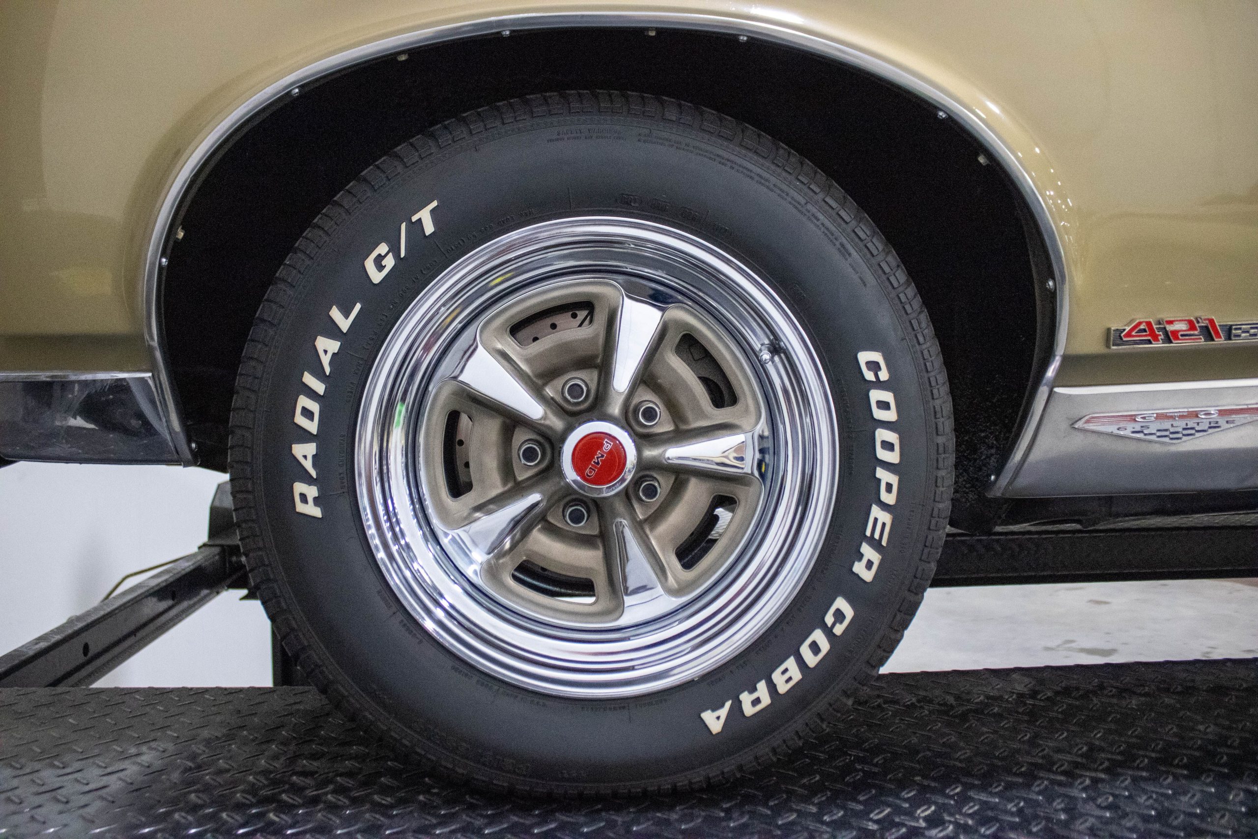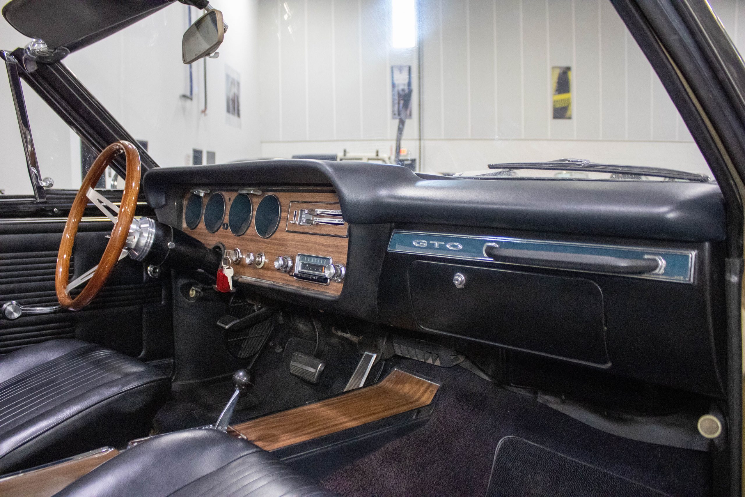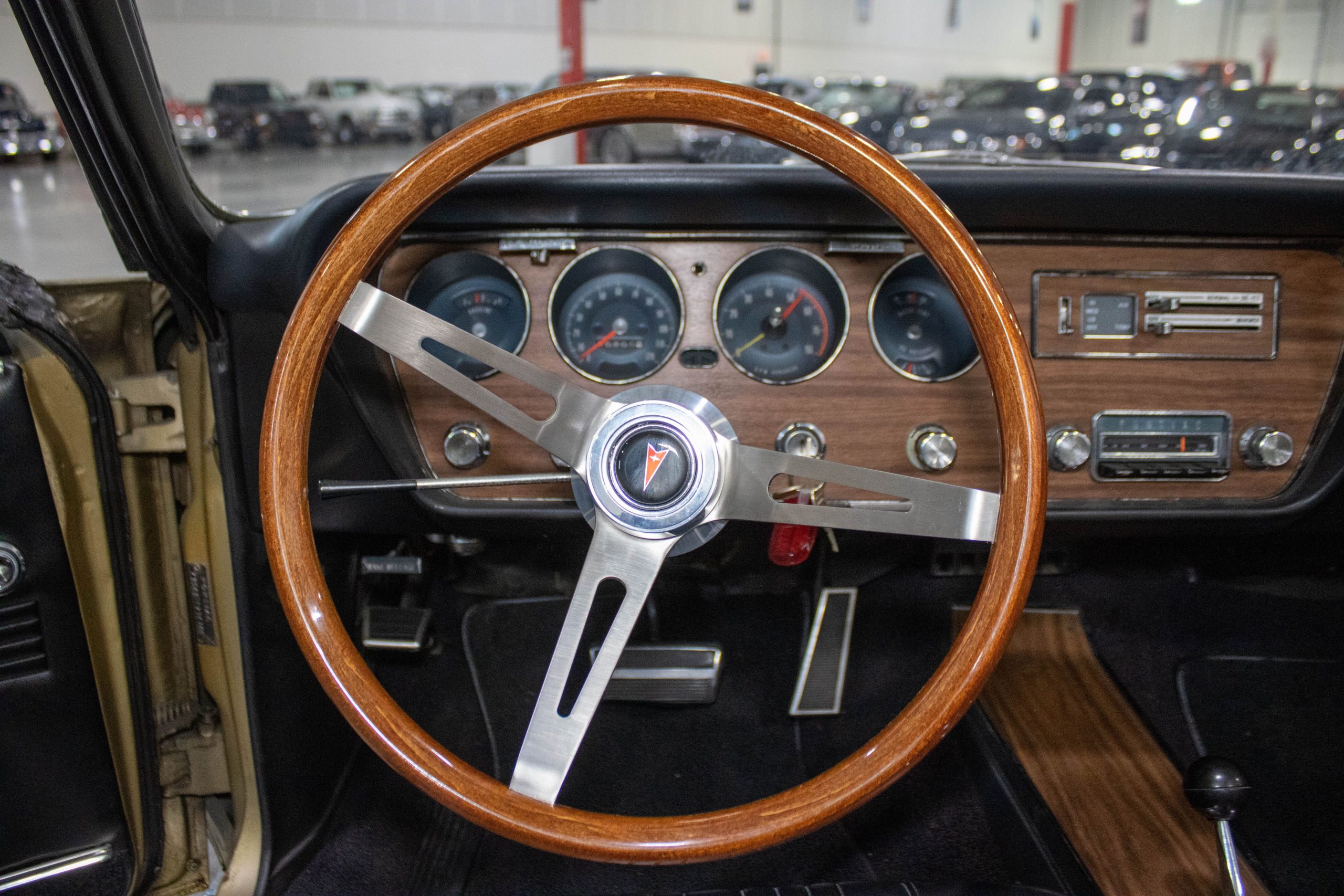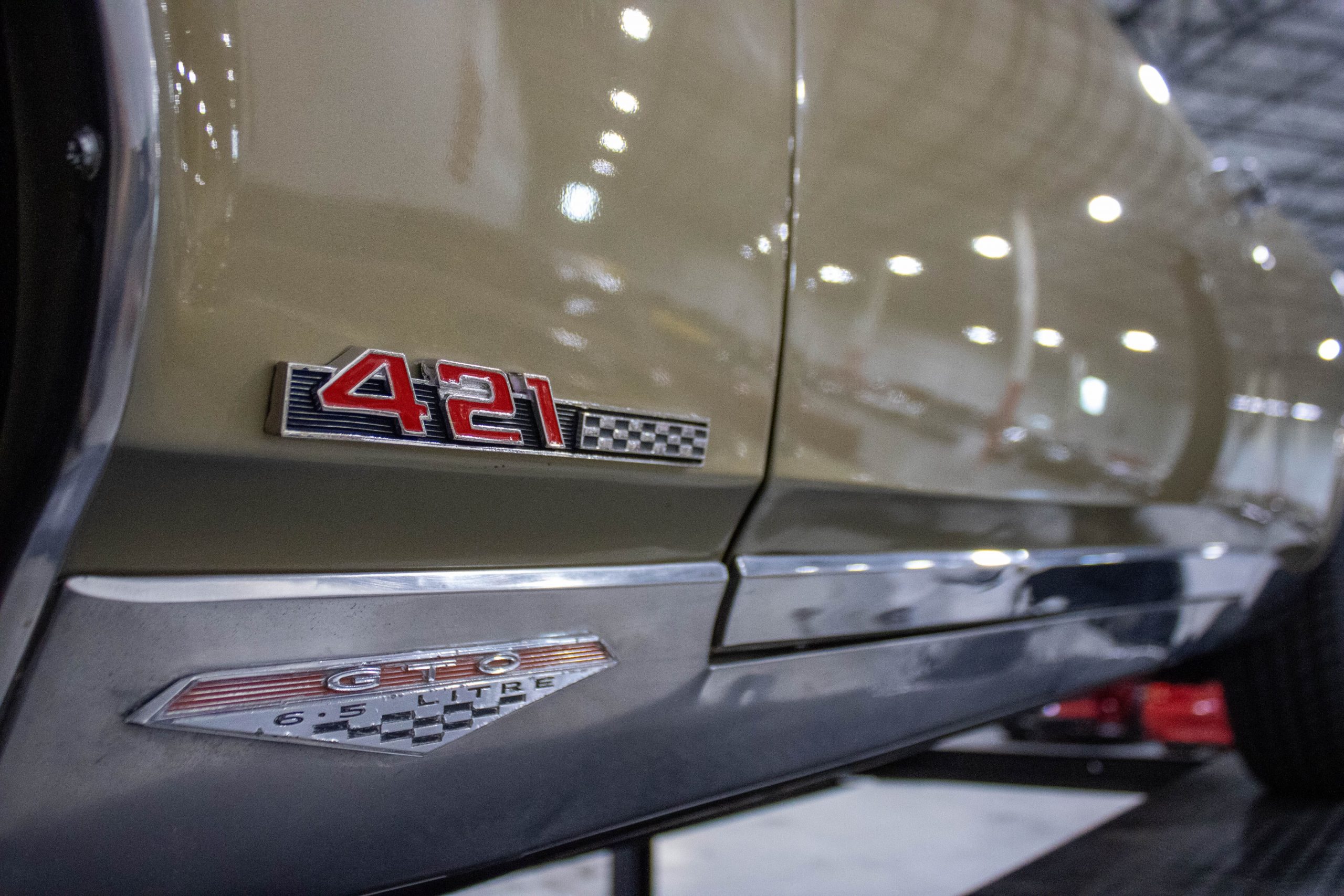 This 1967 Pontiac GTO is a beautifully restored example of classic American muscle, finished in a refined Champagne Poly exterior that contrasts perfectly with its sleek black interior. It sits confidently on chrome Pontiac Rally wheels, giving it a timeless and aggressive stance. The interior is enhanced with a custom steering wheel and a Hurst shifter, adding a performance-focused touch to the driver experience. Under the hood lies a powerful 421 V8 engine fitted with 670 cylinder heads and a new, numbers-correct 1966 Tri-Power carburetor setup—delivering both era-authentic performance and throaty muscle car sound. A rebuilt front end, new front brakes, and rear air shocks contribute to the car’s roadworthiness and handling, while a 400 Turbo transmission ensures smooth, reliable shifting.