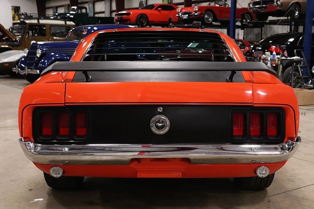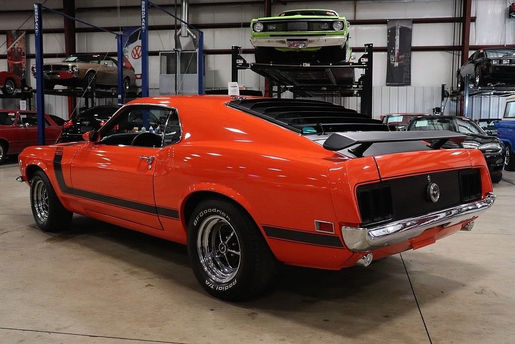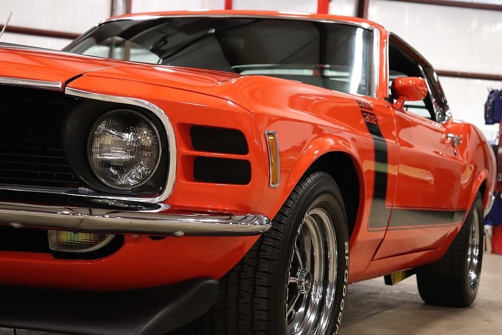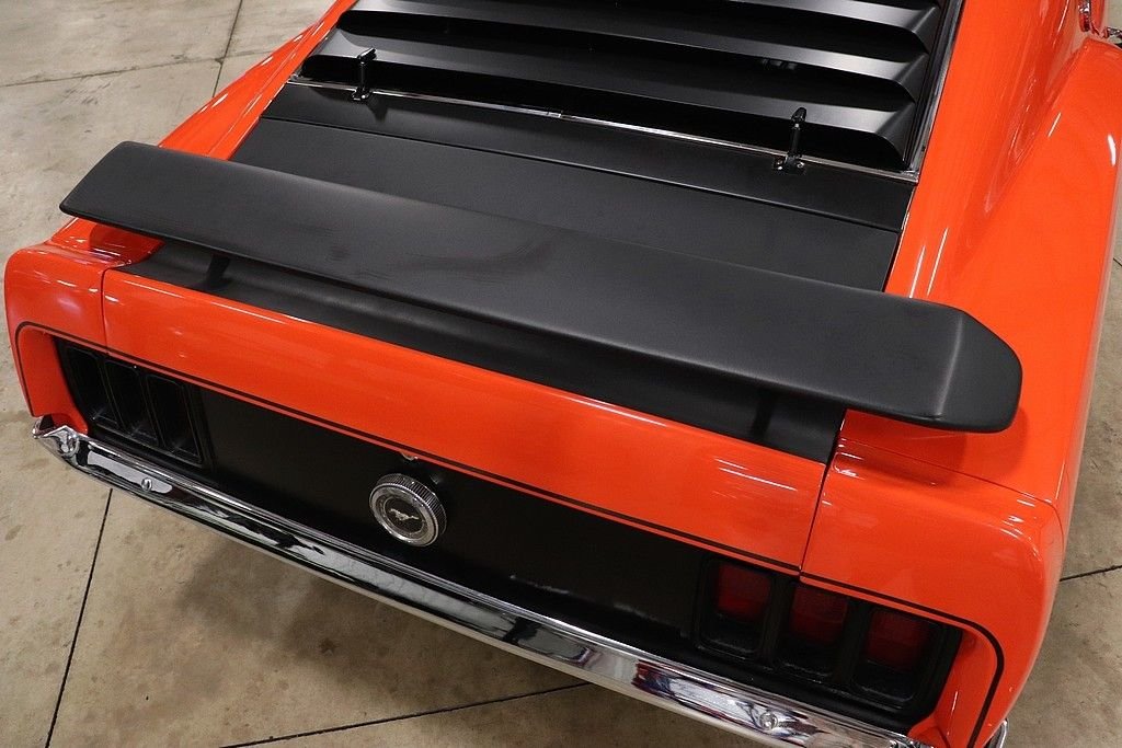 1970 Mustang Boss 302 tribute car for your consideration. This car features an older restoration and was original painted Grabber Blue before it was changed to Calypso Coral. The exterior is in stunning shape, with a very excellent repaint on the straight body. The car features the classic 302 graphics and is complemented by the rear spoiler, window louvers, and factory alloy wheels with BF Goodrich tires. The interior is very clean and features cloth and vinyl bucket seats. The interior has the wood grain trim, wood rimmed steering wheel, Hurst shifter, radio, and full instrumentation.