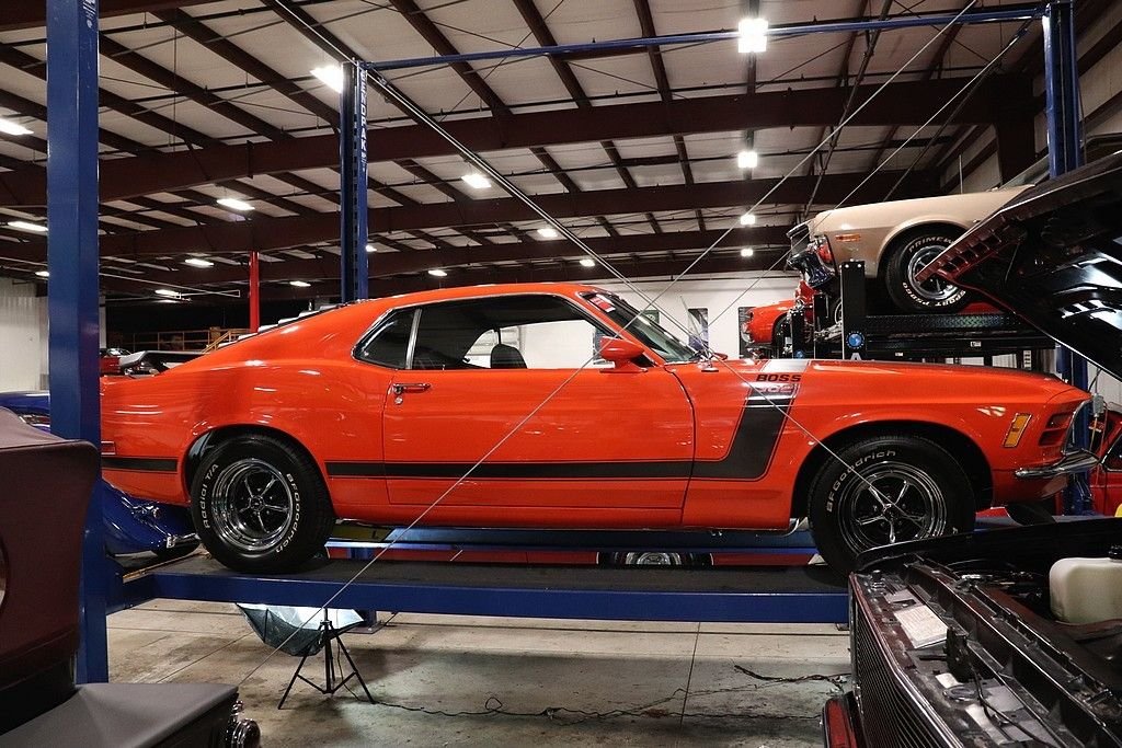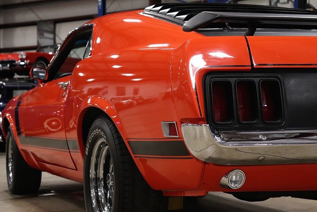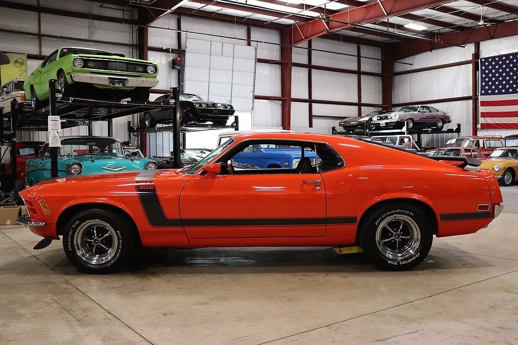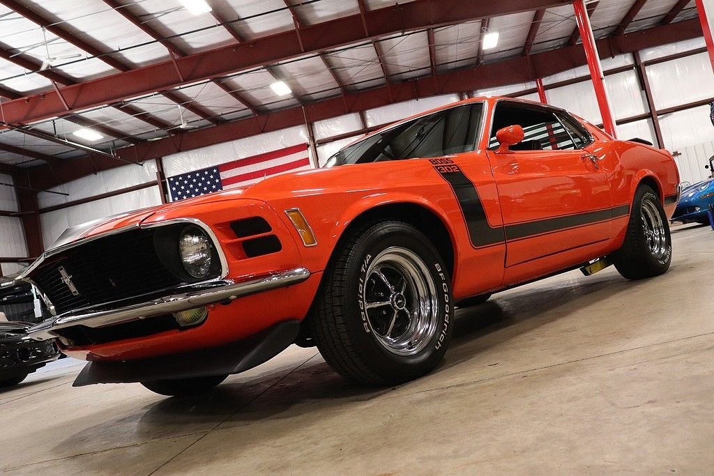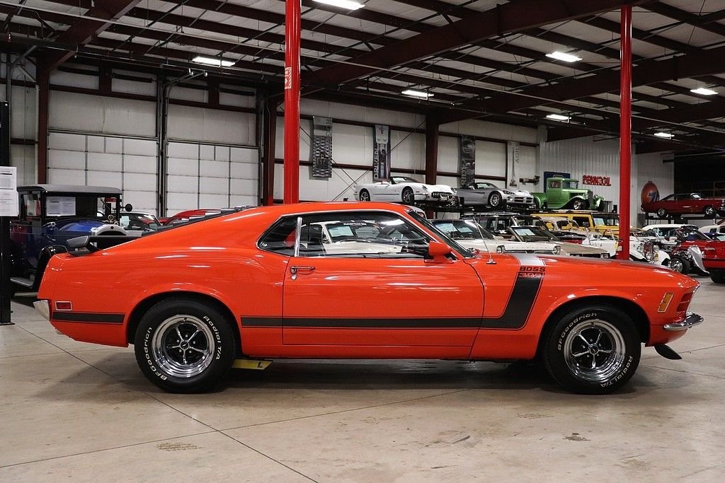 1970 Mustang Boss 302 tribute car for your consideration. This car features an older restoration and was original painted Grabber Blue before it was changed to Calypso Coral. The exterior is in stunning shape, with a very excellent repaint on the straight body. The car features the classic 302 graphics and is complemented by the rear spoiler, window louvers, and factory alloy wheels with BF Goodrich tires. The interior is very clean and features cloth and vinyl bucket seats. The interior has the wood grain trim, wood rimmed steering wheel, Hurst shifter, radio, and full instrumentation.