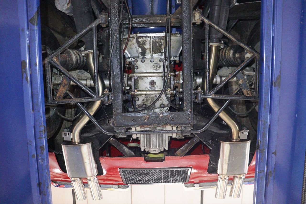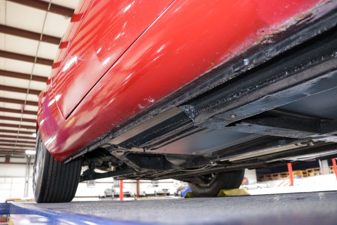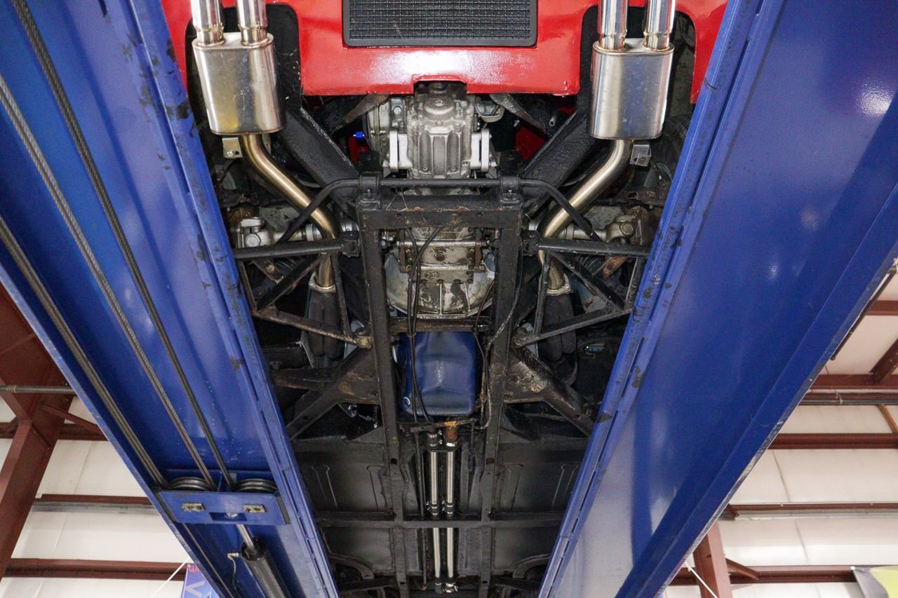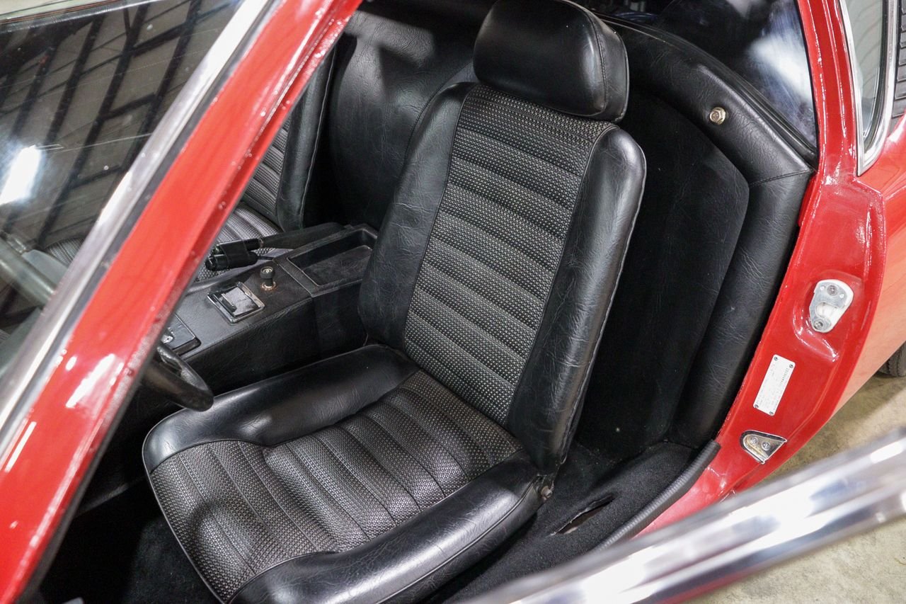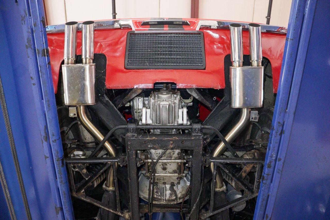 The exterior of this Pantera is painted in a striking red color with the original wheels and appropriate Goodyear tires completing the exterior look. Needless to say this is a beautiful car. It was designed by the Italian design firm Ghia’s American-born designer Tom Tjaarda. Unlike the De Tomaso Mangusta before it, the Pantera used a steel monocoque design.