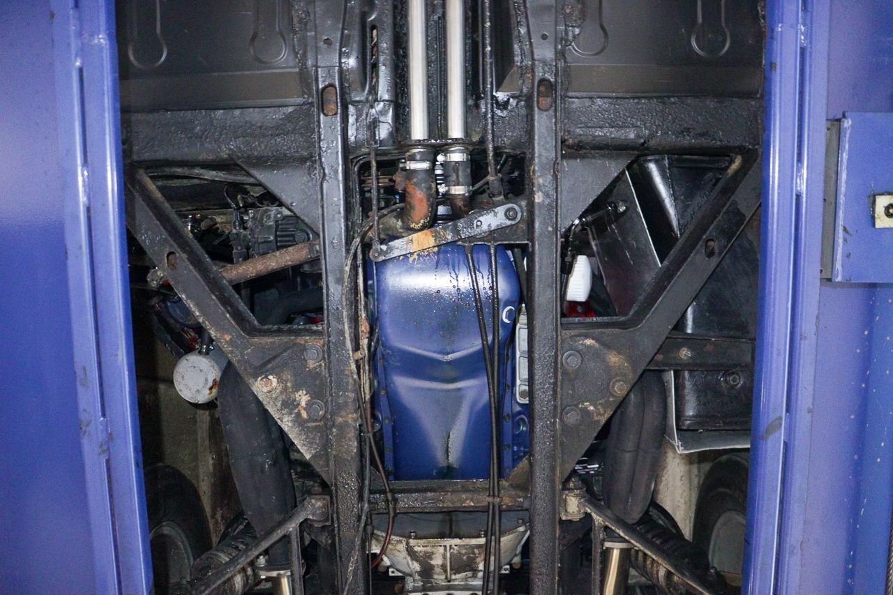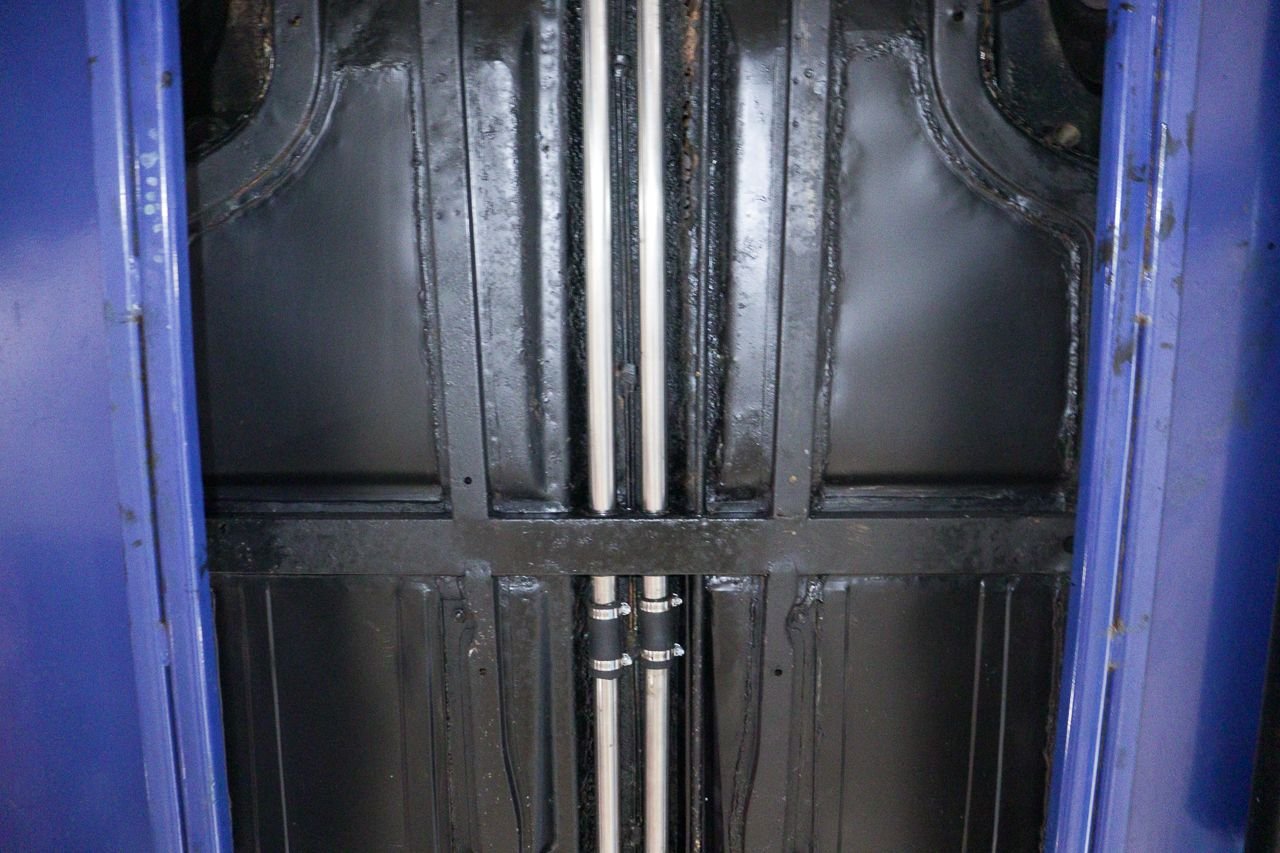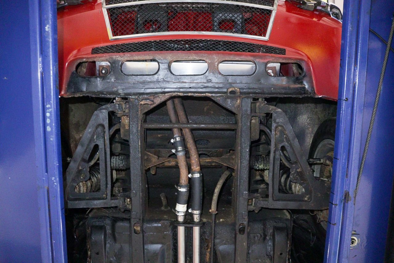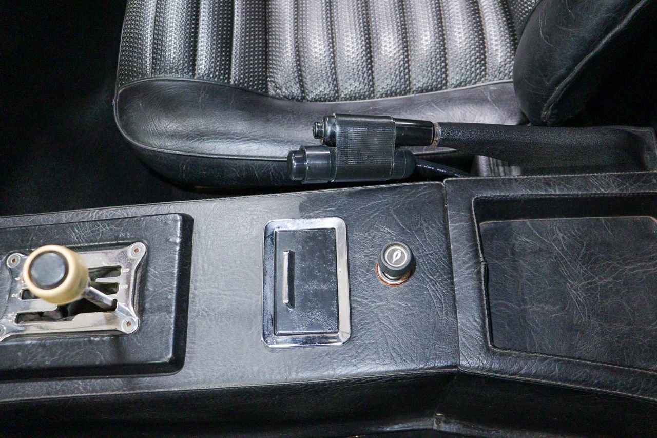 Inside the vehicle is a clean black leather interior. All gauges work as they should as do all lights. This example does use a push button ignition switch that is mounted to the parking brake lever.
