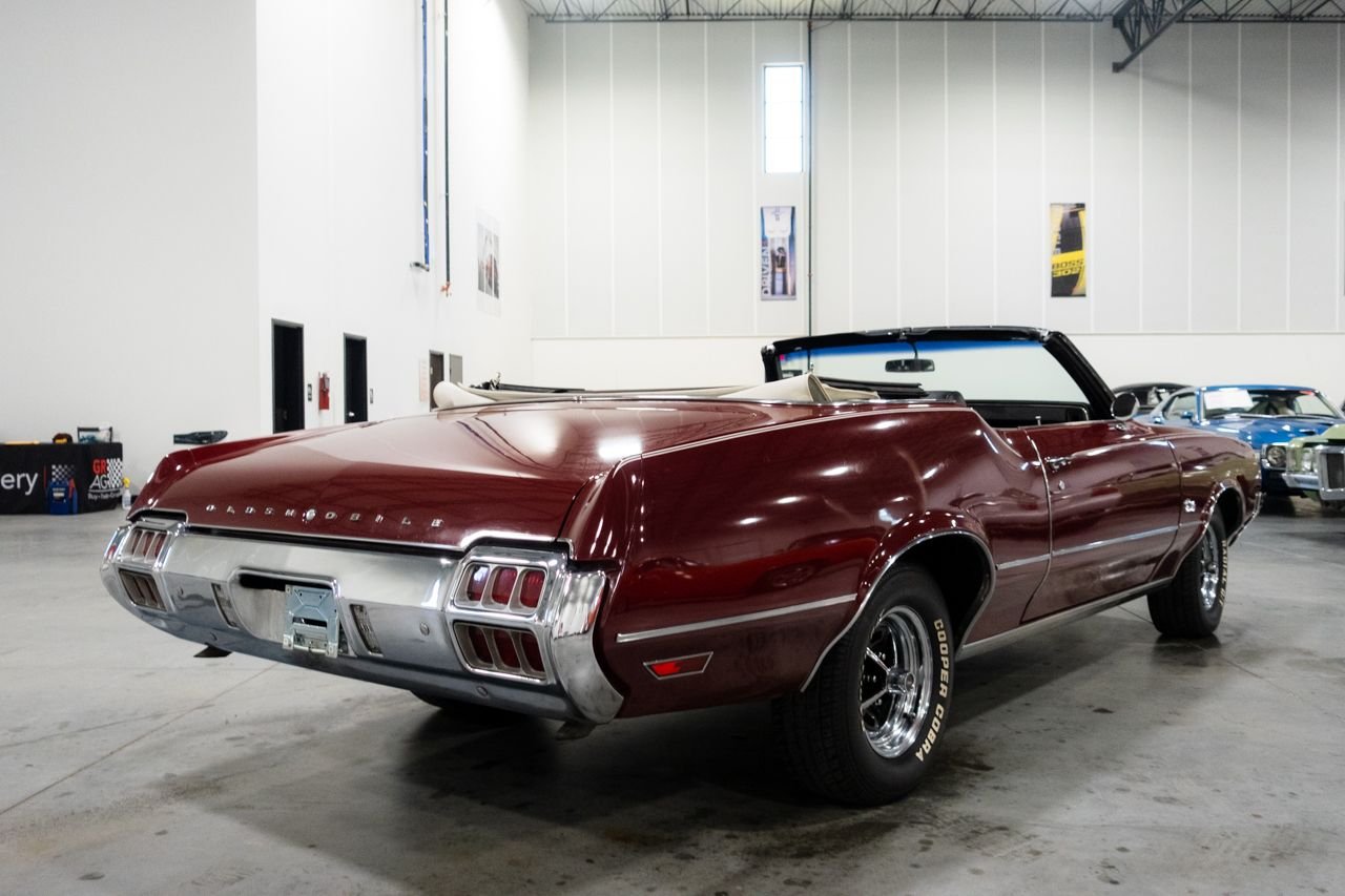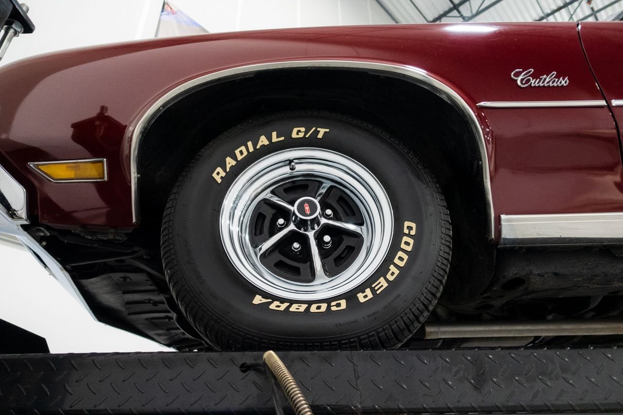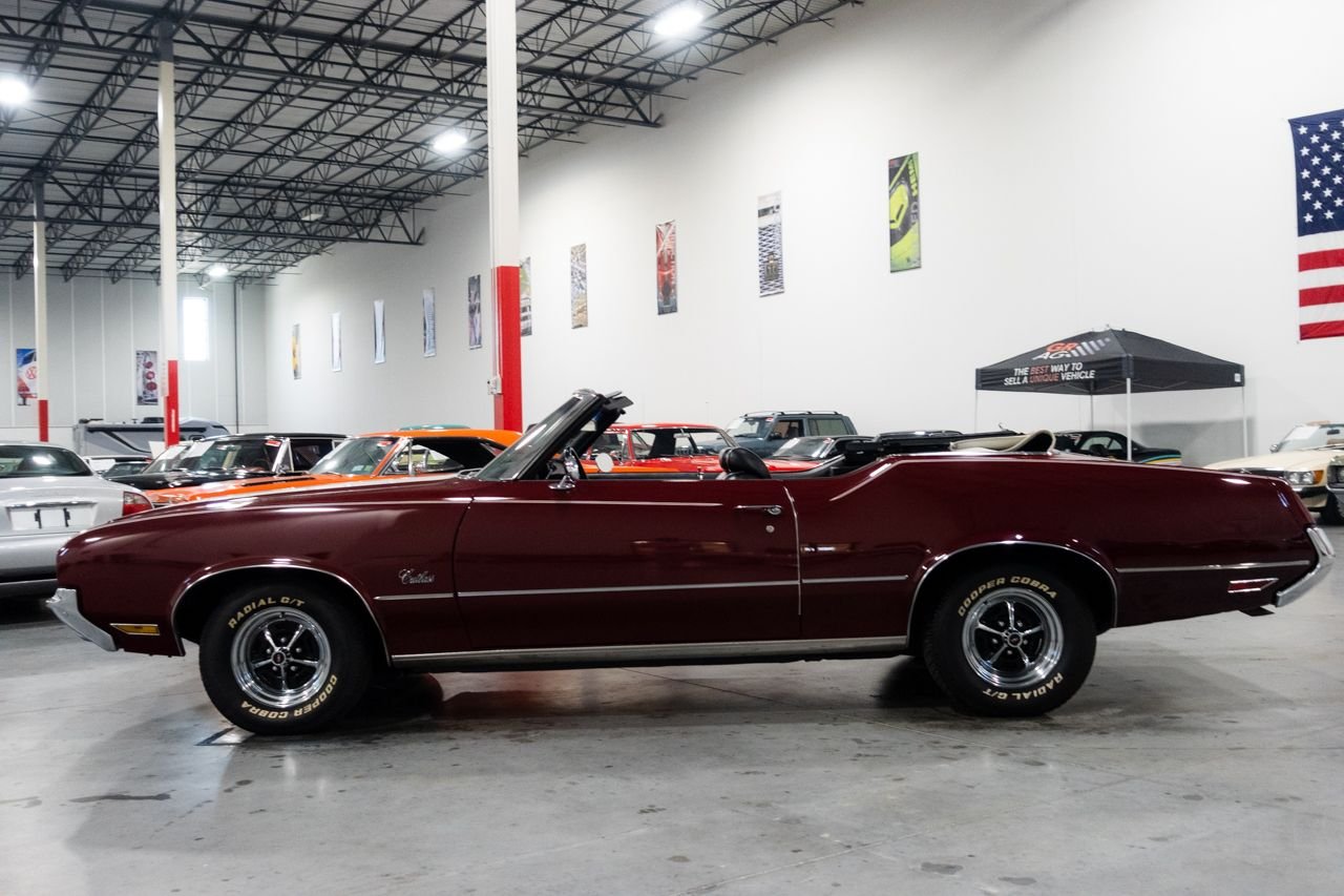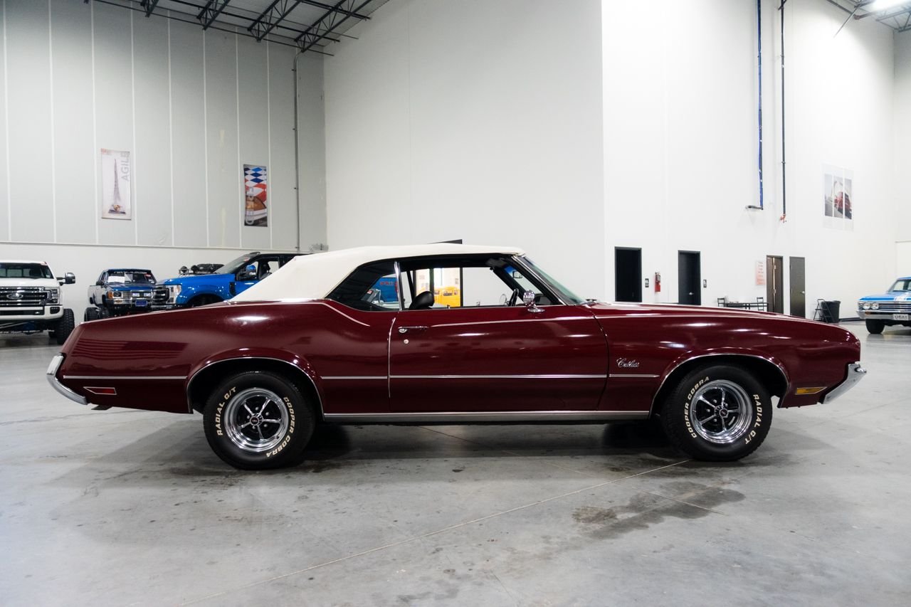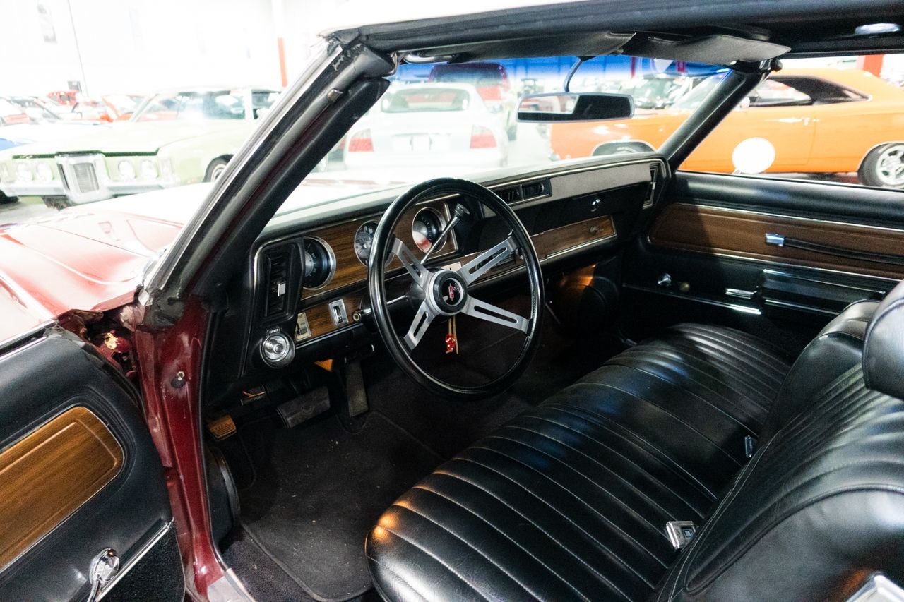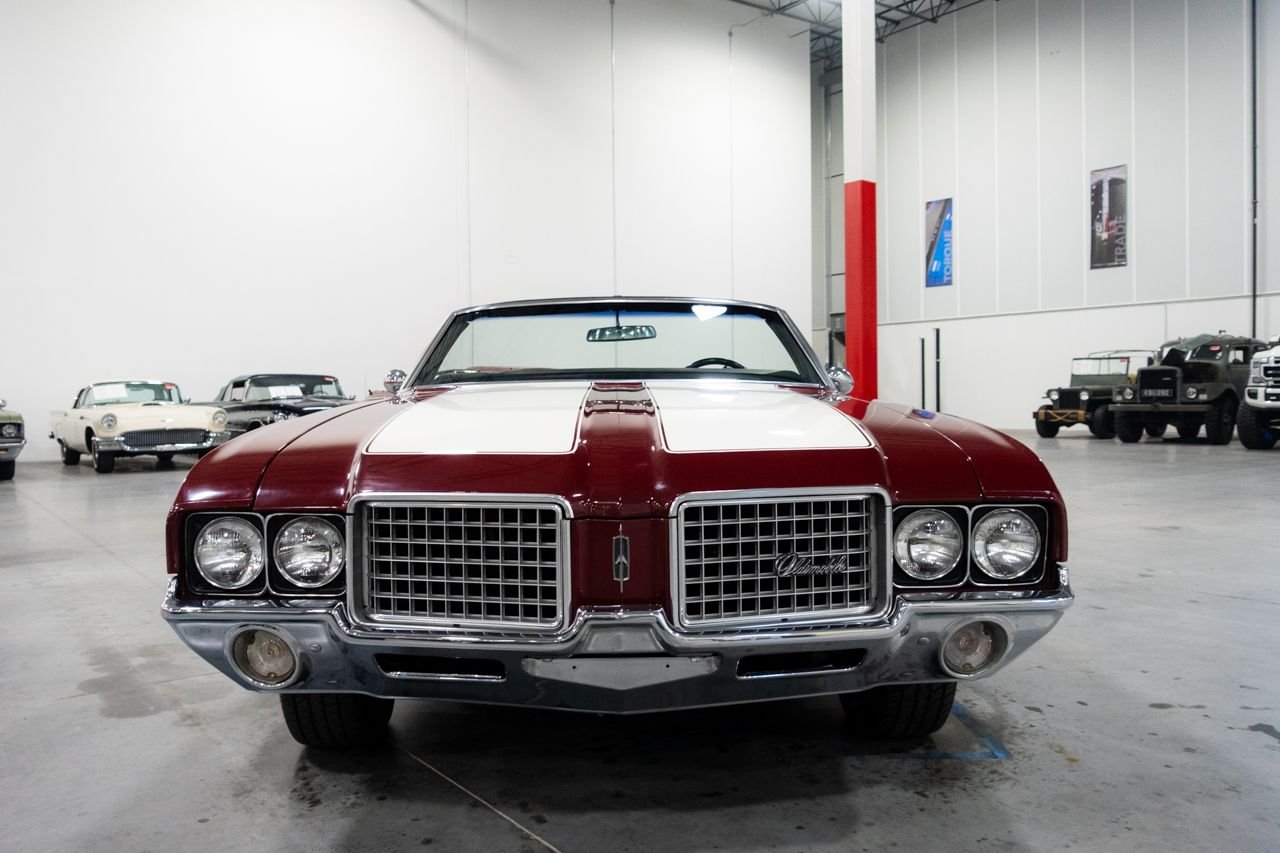 1972 Oldsmobile Cutlass convertible for consideration. This well restored and strong running Cutlass convertible is very clean and shows beautifully. The car is finished in Matador Red with a beautiful black interior. The electric top is in great condition and functions flawlessly. Powering this classic is a Rocket 350 with a 4-barrel carburetor mated to an automatic transmission. The car features power steering, AC, sport mirrors, power brakes, Sherwood AM/FM radio, Magnum wheels, and a custom spare tire cover. Don’t miss out on this beautiful classic, they don’t get any better! Drive this one out of our showroom or have us assist you with shipping anywhere within the United States!