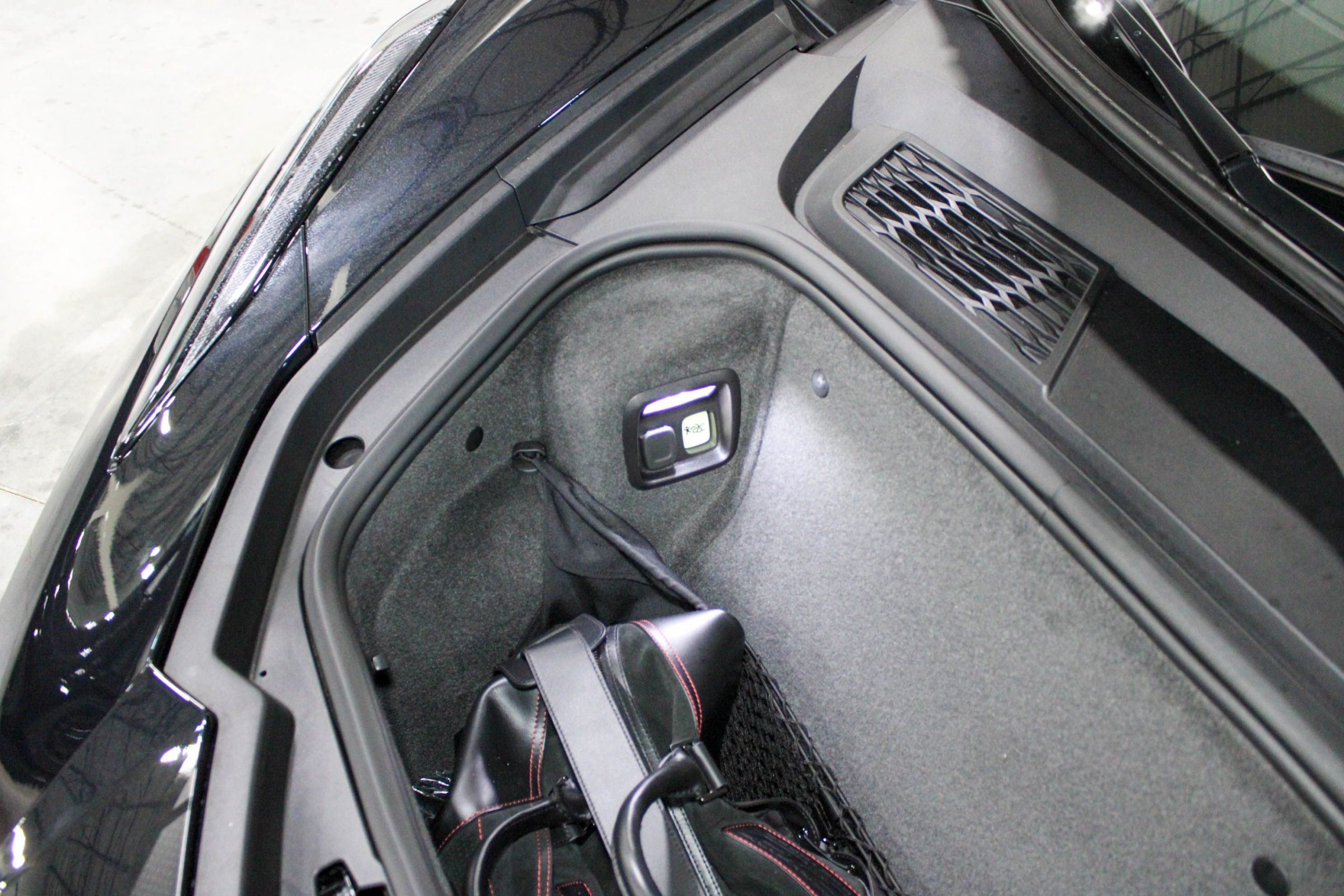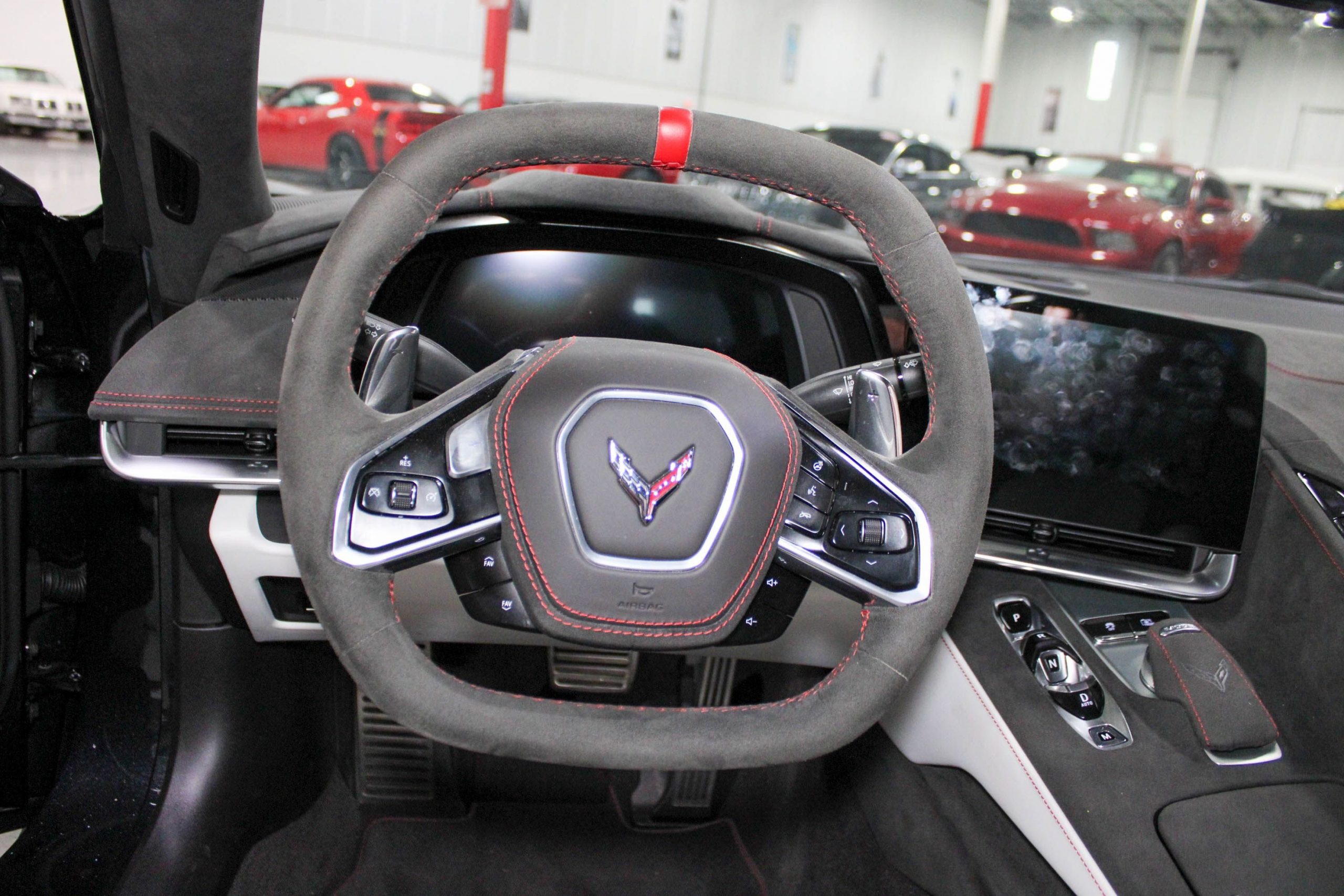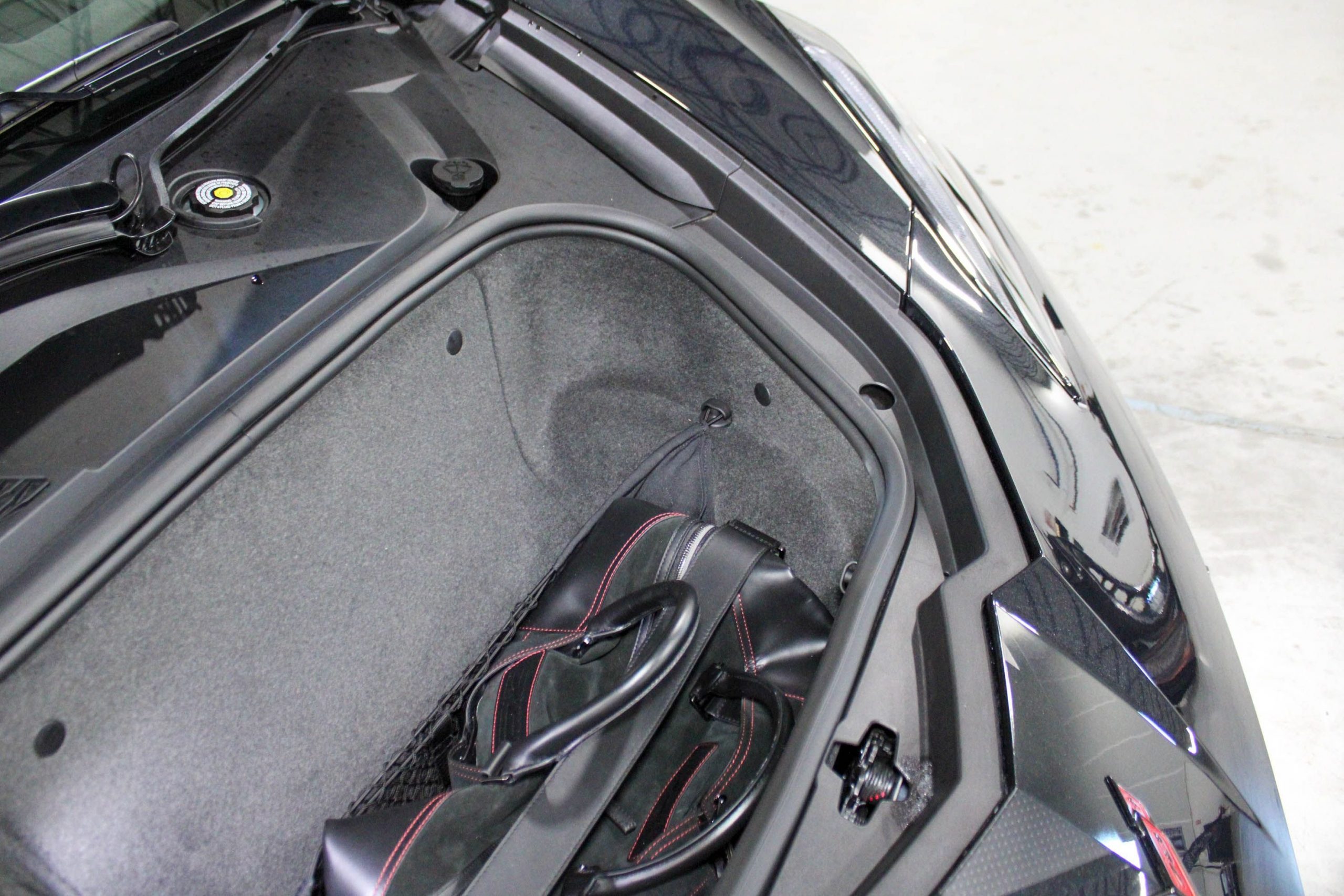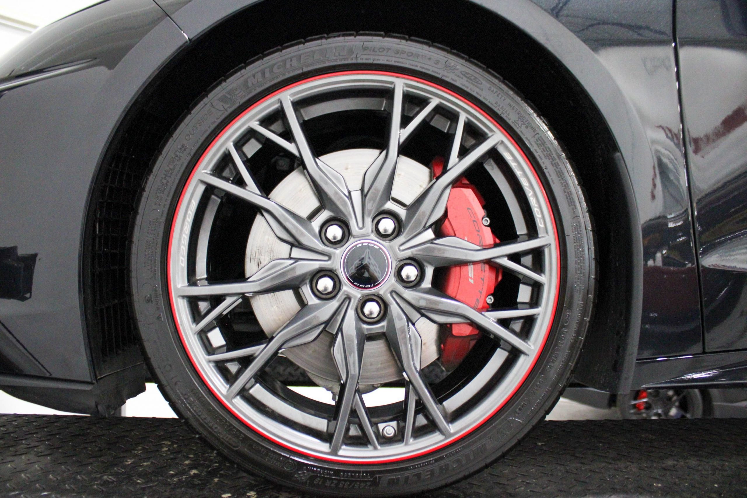Adding to its exclusivity, this Stingray features 20-spoke Midnight Gray forged aluminum wheels with a bold Red stripe, specially designed for the 70th Anniversary Edition. It also comes with the original 70th Anniversary Corvette travel bags, a stylish and functional complement to the car’s upscale design.