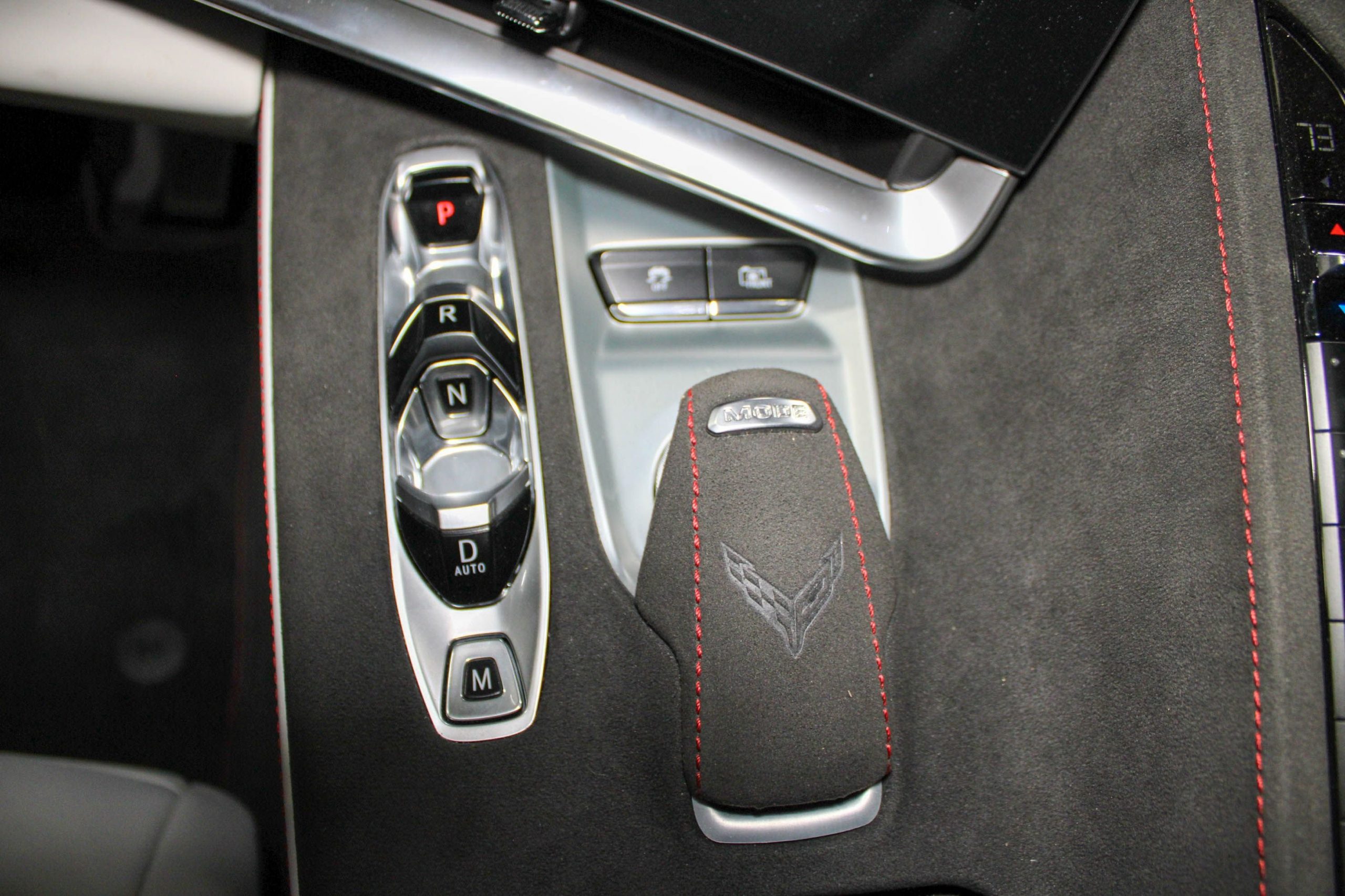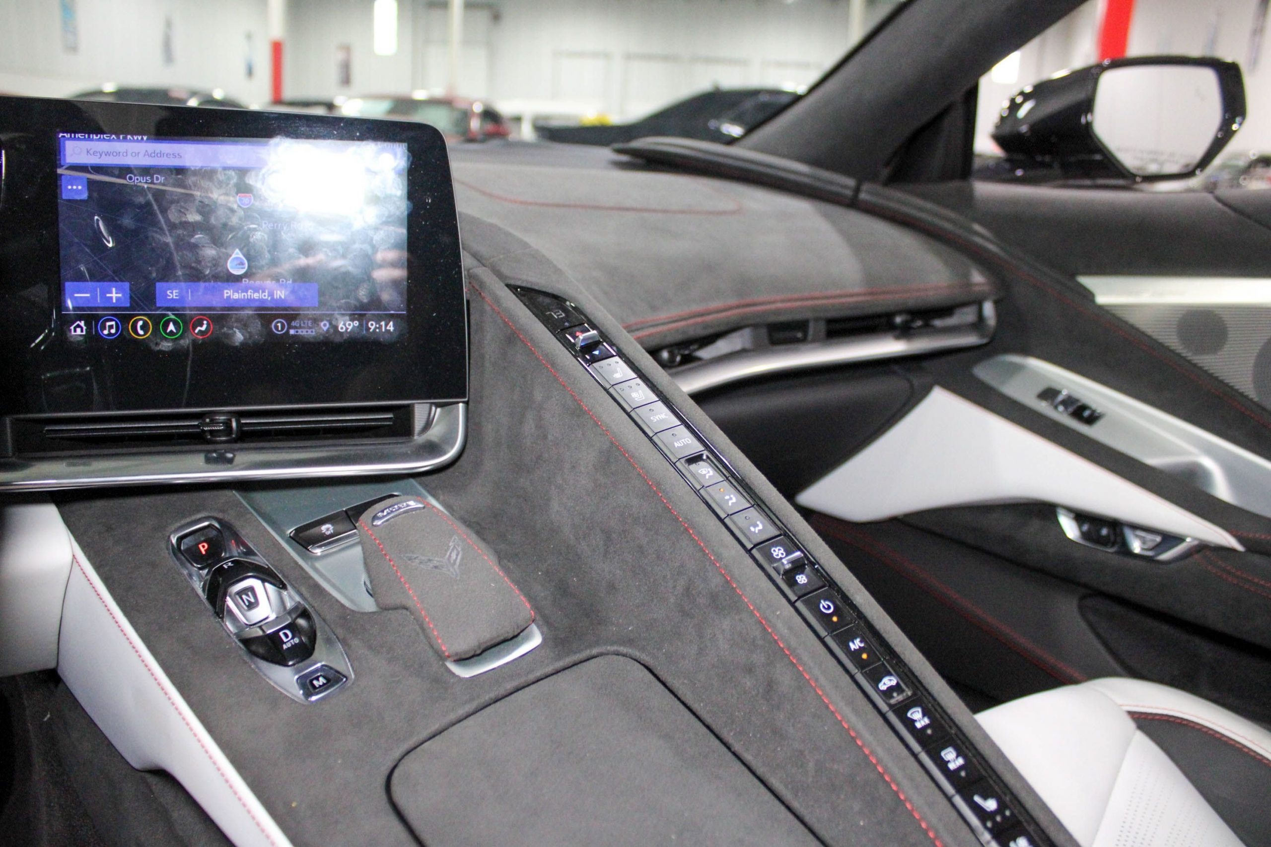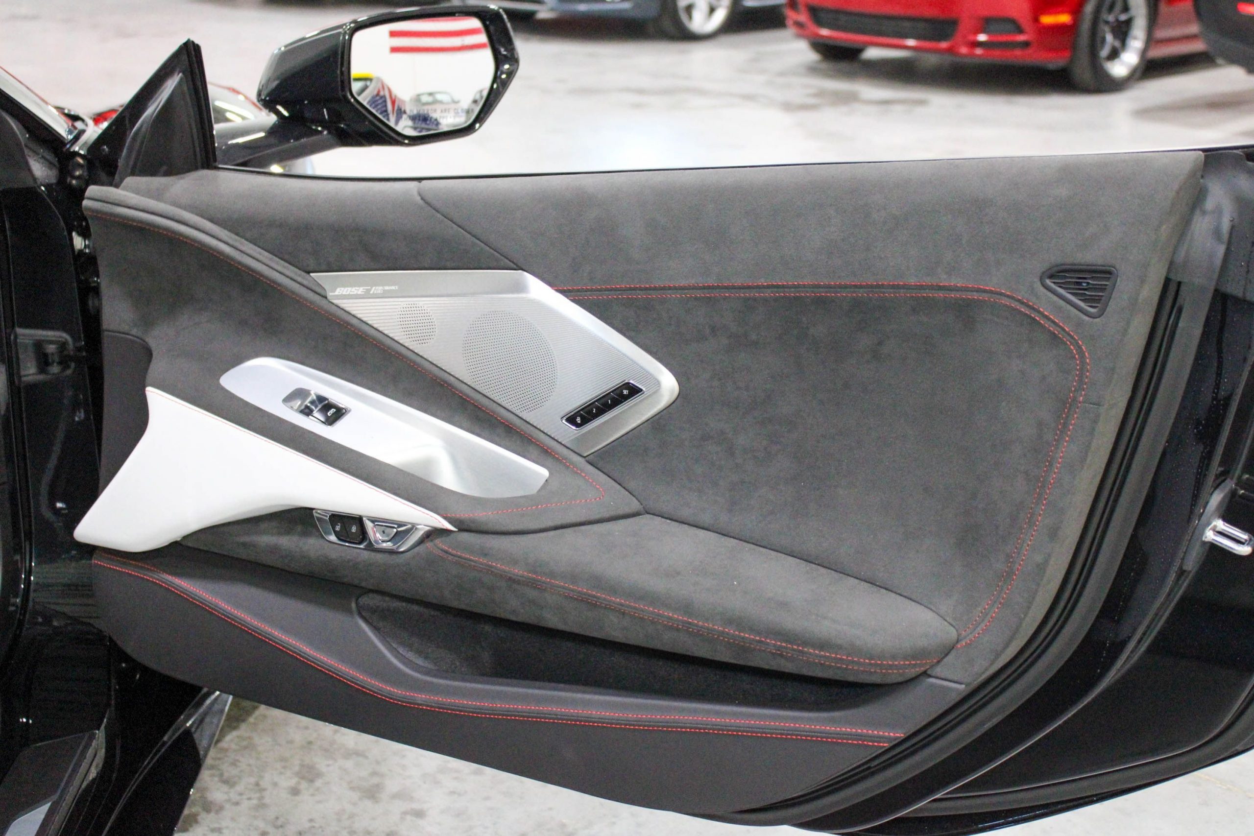 Inside, the cabin is appointed with the Ceramic White leather interior, elegantly accented by Red stitching and trim, giving a sophisticated yet performance-inspired feel. The 70th Anniversary branding is tastefully integrated throughout the vehicle, from the seat embroidery to the unique badging, ensuring this Corvette stands out as a true collector’s model.